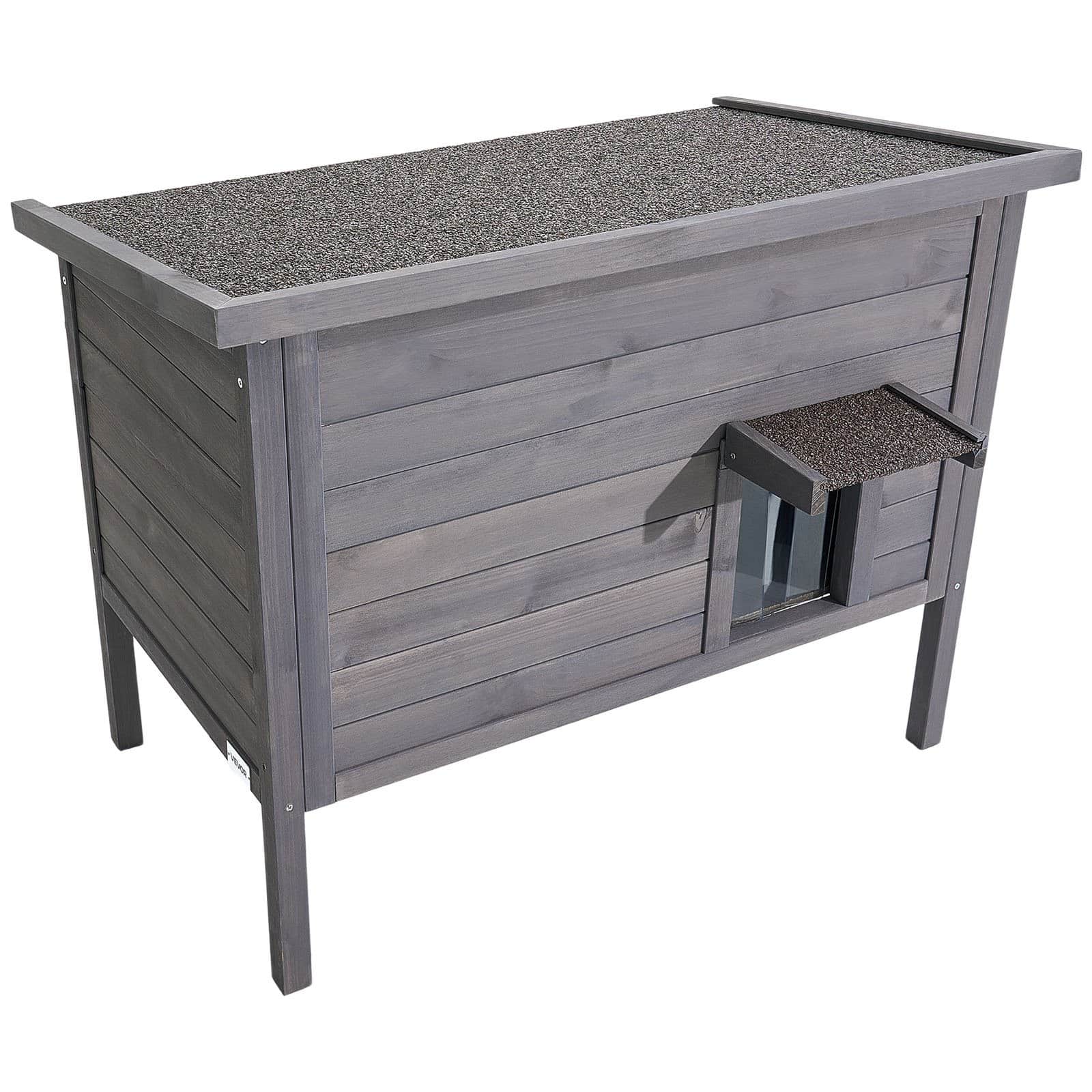 Made from durable and sustainable fir wood, the heated cat house offers a cozy and secure shelter for cats. Includes a heating pad to keep cats warm and comfortable even in harsh winters.