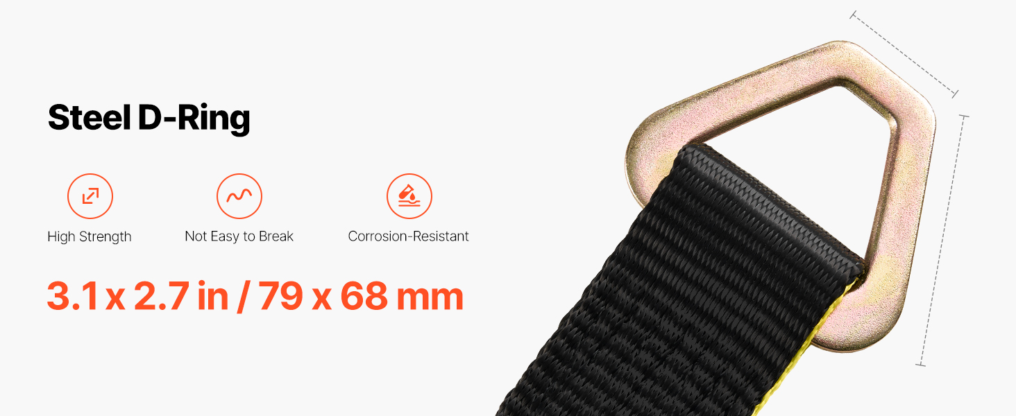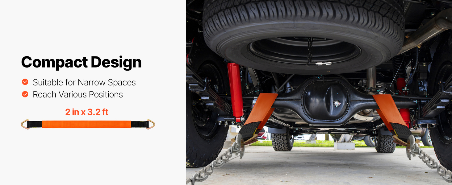 VEVOR Axle Straps, 2 in x 3.2 ft Heavy Duty Axle Tie Down Straps, 12000 lbs Break Strength Axle Tie Down Straps with D Rings, 4 Pack Heavy Duty Axle Straps, for Car, Trailer, Truck, Towing & Hauling
