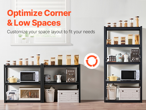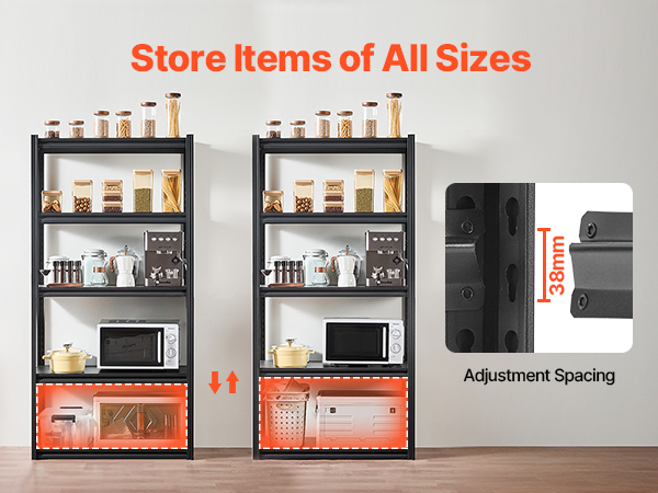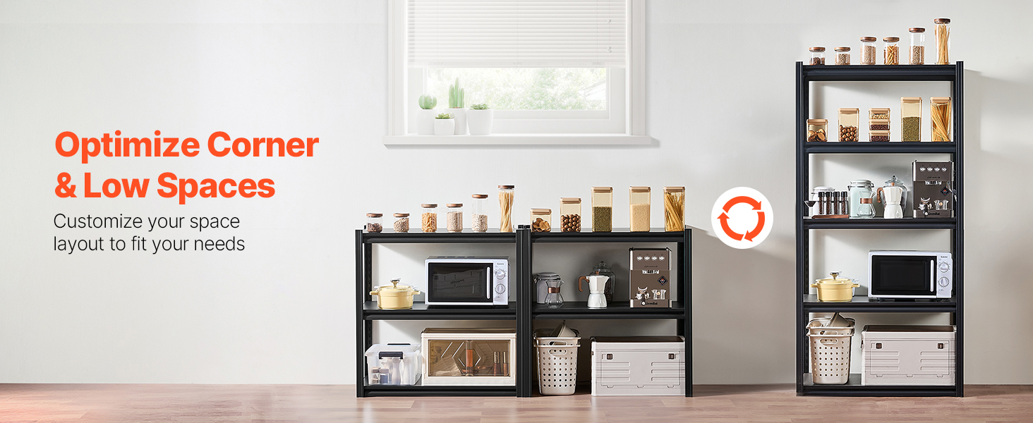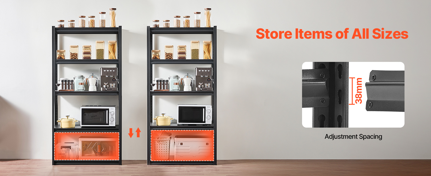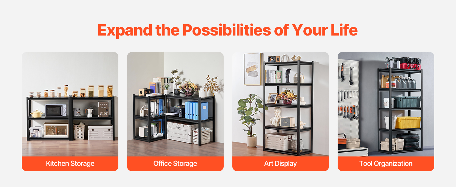 This storage shelving unit is a 2000 lbs weight capacity powerhouse, easily handling all your storage needs. Whether it's tools or miscellaneous items, everything stays organized and tidy.