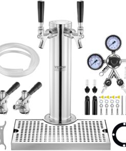 Elevate your beverage dispensing experience with the VEVOR dual faucet draft beer tower dispenser. Featuring self-closing tap spring, dual gauge W21.8 regulator, S-system keg coupler, stainless steel column and chrome-plated solid brass beer faucets, it ensures optimal freshness and taste.