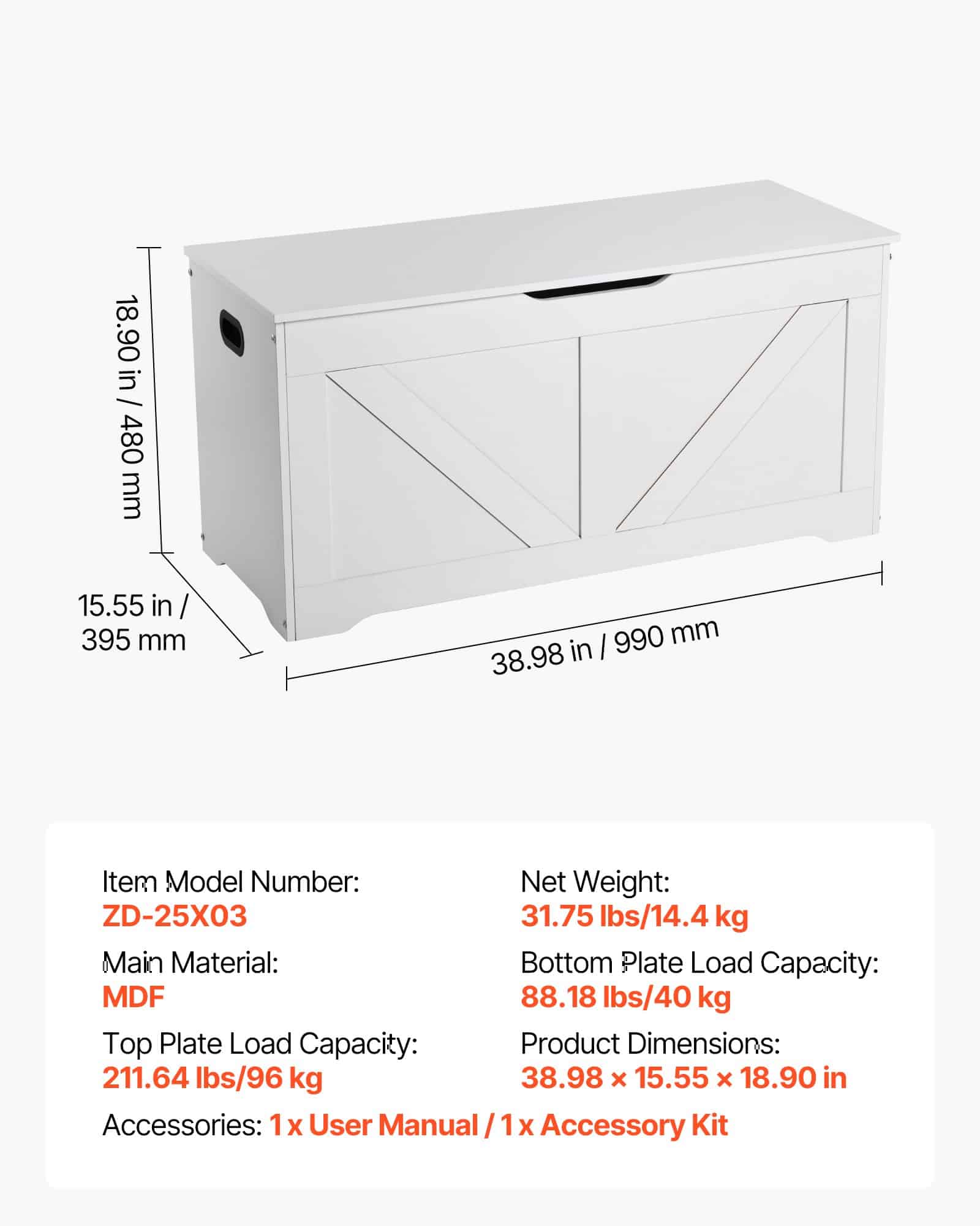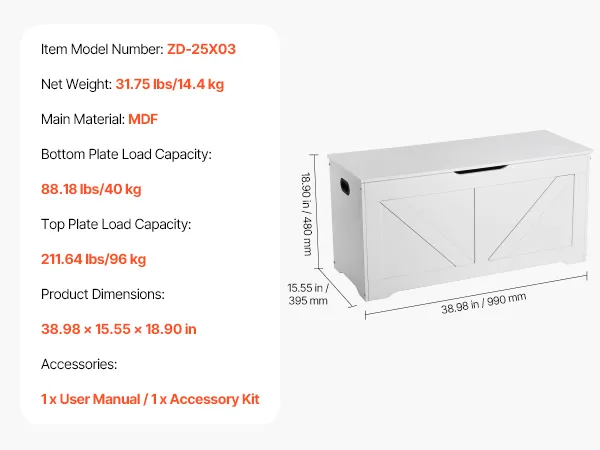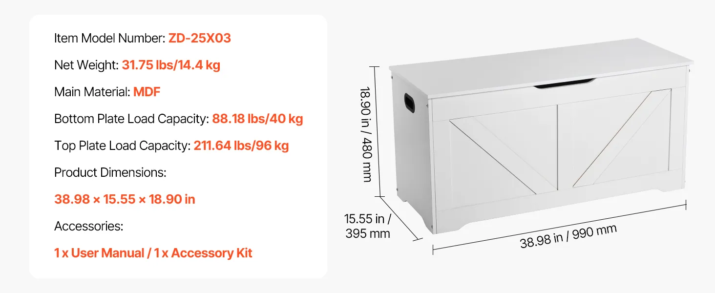 • Long-Lasting & Stable: The toy storage bench features MDF, its bottom supports 88 lbs/40 kg, and the top 212 lbs/96 kg, ensuring lasting stability. Including 31 mm high legs, it makes cleaning easy, while the water and scratch resistance reduce scratches