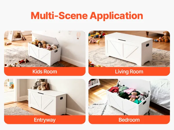 • Versatile Design: Serving as a seat and a storage box, our toy chest storage features handle openings for easy movement between various scenarios. From bedside to shoe bench or toy storage, it is ideal for children’s rooms, living rooms, and the entrance