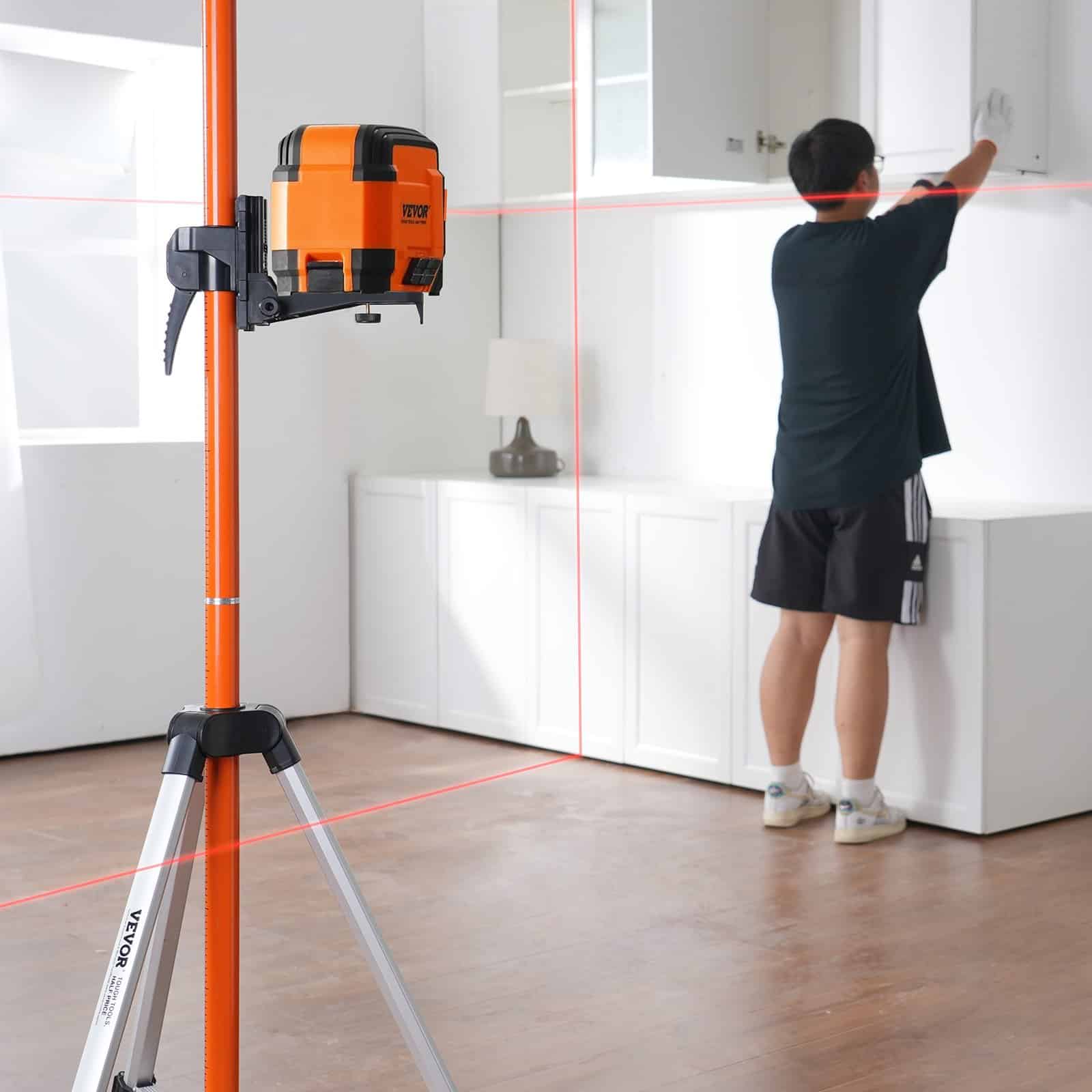 The VEVOR tripod is made from premium aluminum, making it sturdy and durable for long-term use without wear. Height is adjustable to meet various measurement needs. Compatible with line lasers, point lasers, and laser distance meters, widely used in construction, and interior decoration.