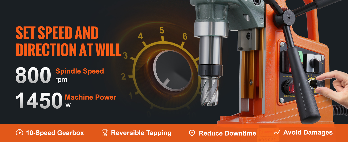 VEVOR Magnetic Drill 1450W 12800N Portable Mag Drill Press 800RPM