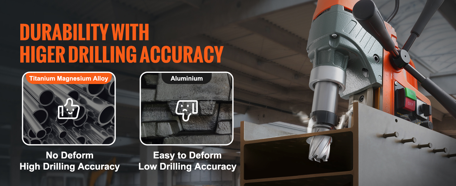 Get ready to drill smarter, not harder! Manufactured from a high-quality titanium magnesium alloy, this drill press is an essential tool for residential construction, heavy-duty industries, and steel manufacturing.