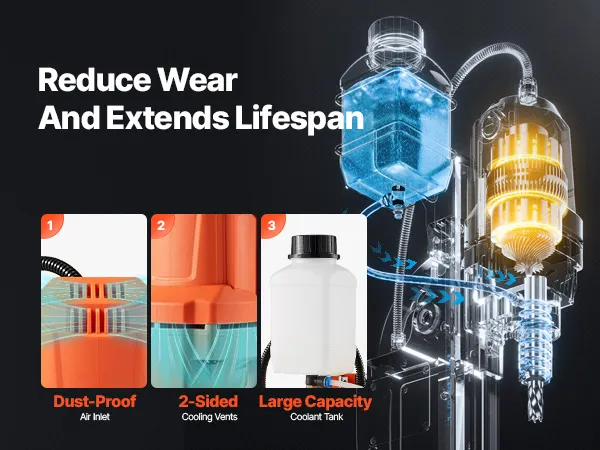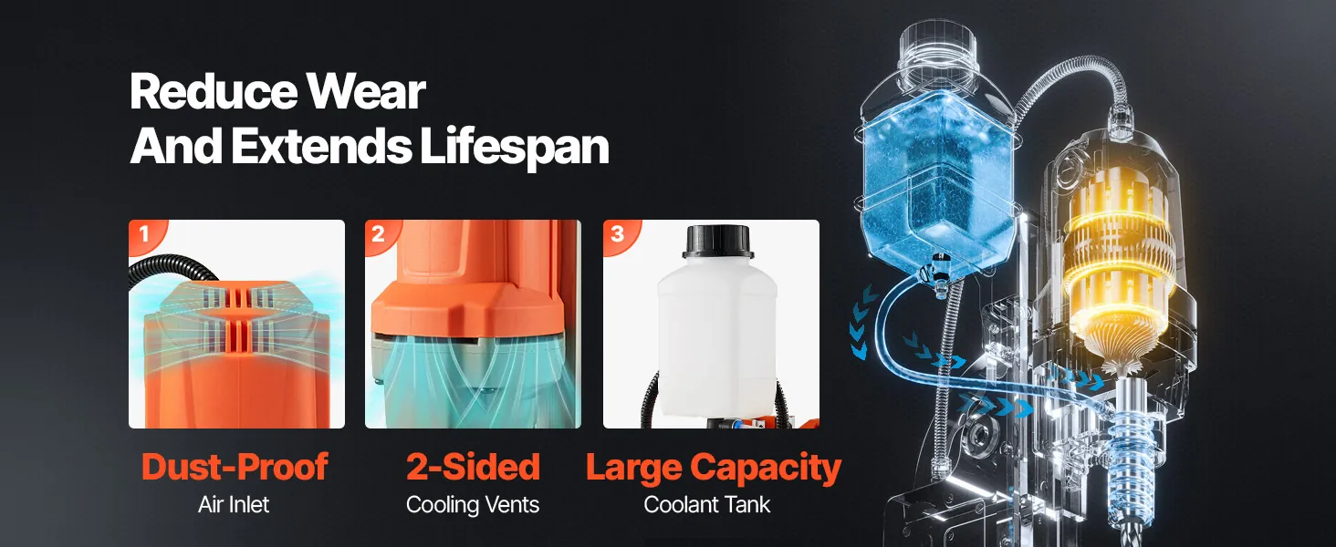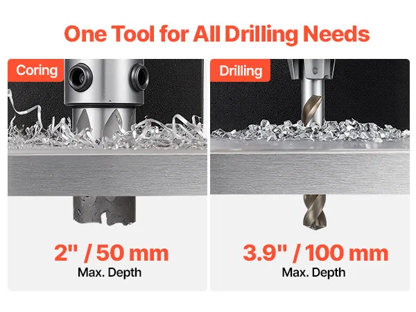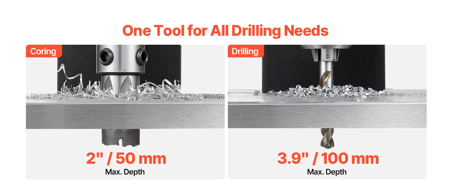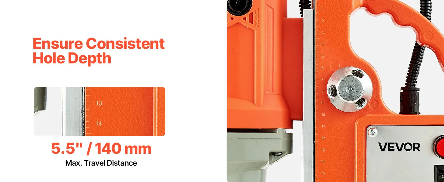 The metal construction of the magnetic drill press ensures stability and durability under heavy-duty use. It withstands harsh working environments and delivers a long-lasting, reliable drilling experience.