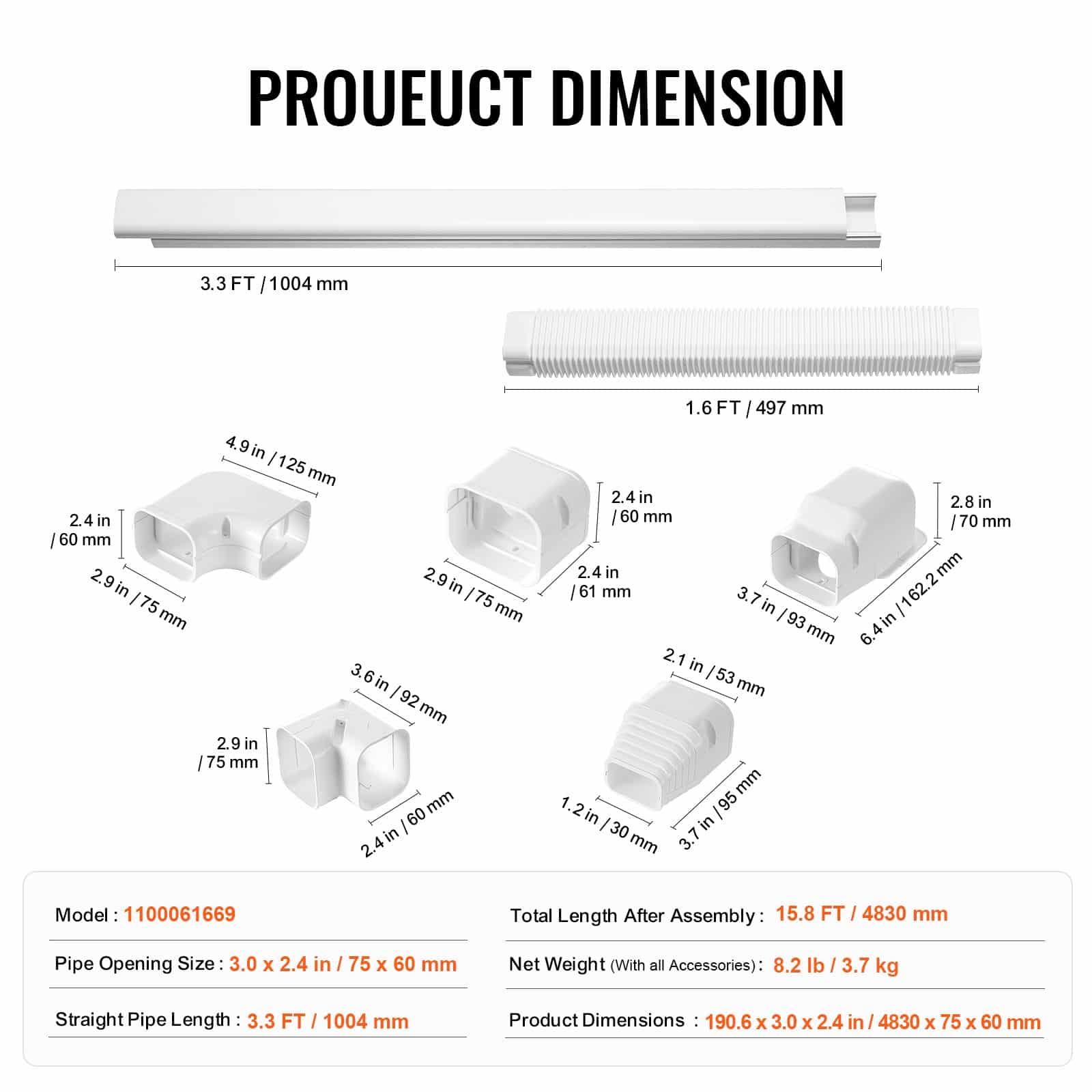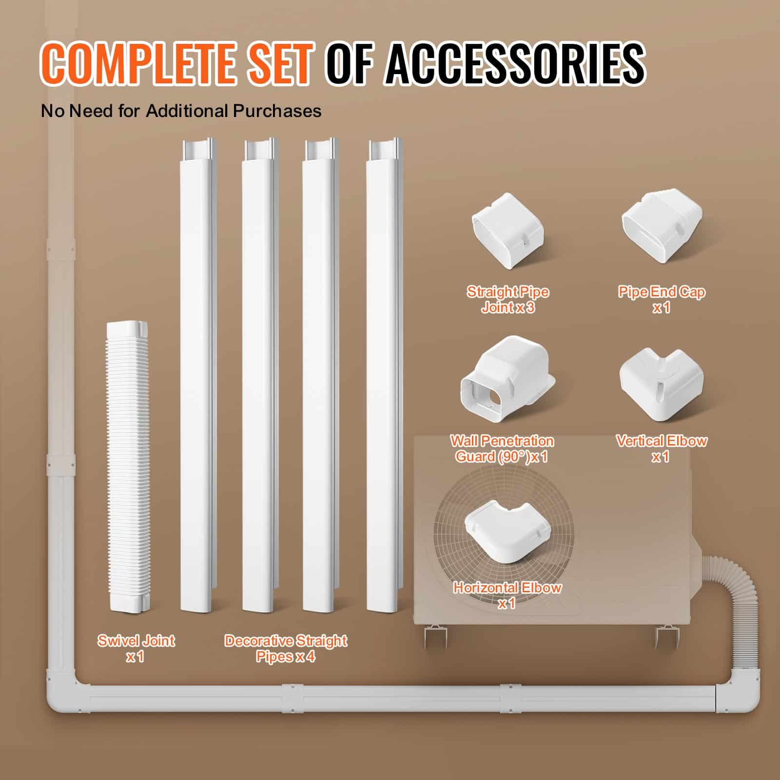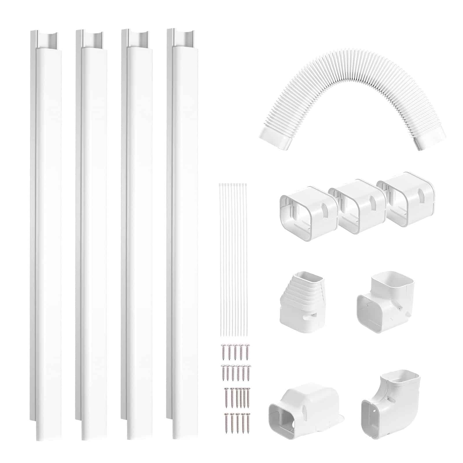 VEVOR Mini Split Line Set Cover 76.2mm W 4830mm L, PVC Decorative Pipe Line Cover For Air Conditioner with 4 Straight Ducts & Full Components Easy to Install, Paintable for Heat Pumps, White