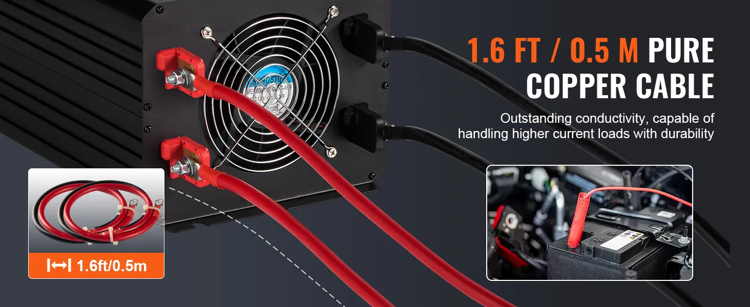 Experience unparalleled flexibility with our sine wave power inverter, featuring a 1.6 FT/0.5 M pure copper connection cable, providing freedom at your fingertips. Say farewell to the constraints of distance, and hello to efficient energy transmission across your space.