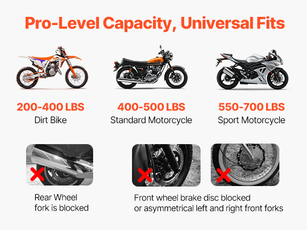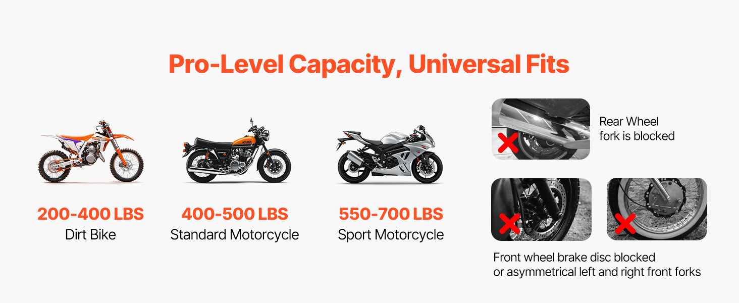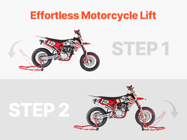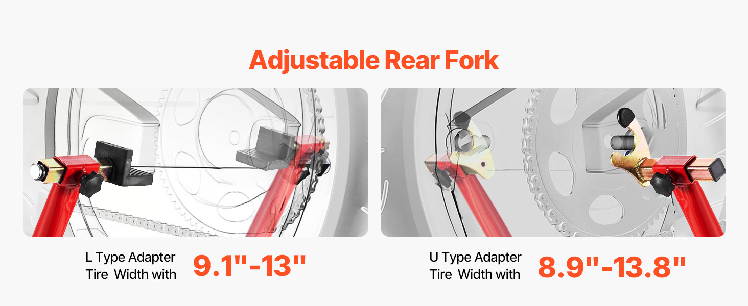 VEVOR Motorcycle Front & Rear Lift Stand Combo, 385kg Capacity, Adjustable Forks, for Yamaha Honda Kawasaki Suzuki, Red