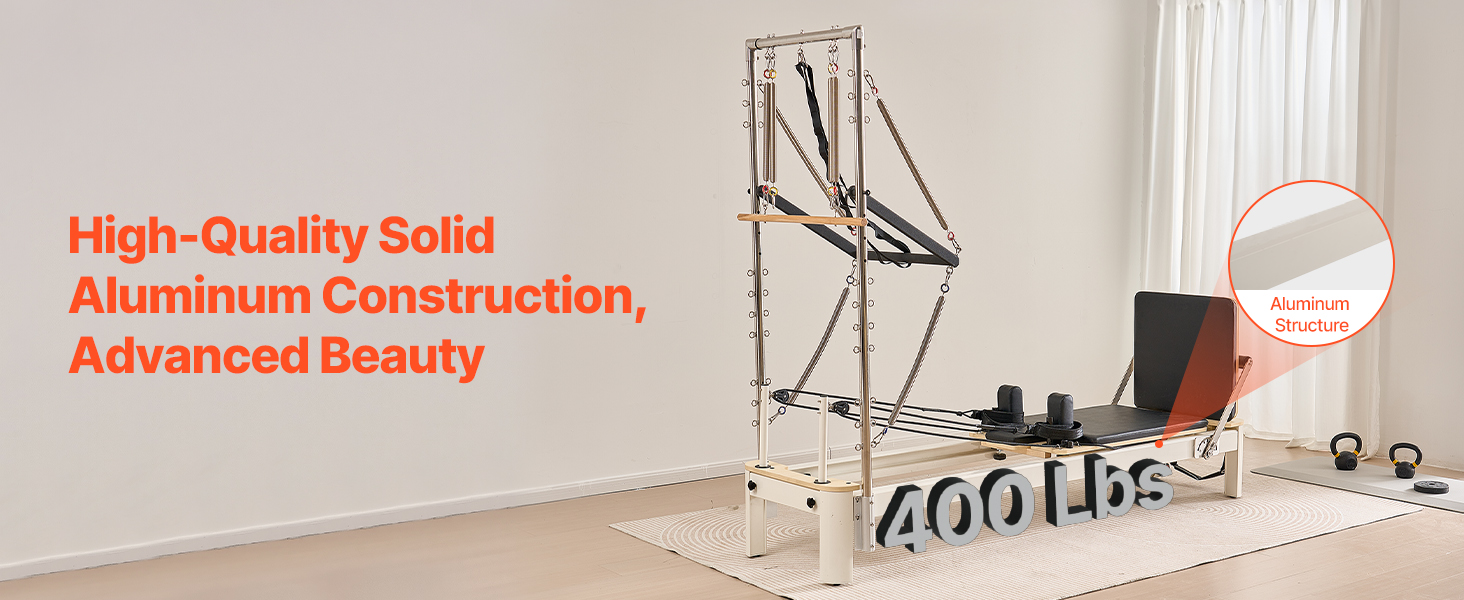 VEVOR Pilates Reformer, Pilates Machine for Home Gym Studio Use, Strength Training Workout Equipment with Dual Resistance, Reformer Box, and Jump Board, for Advanced Users and Beginners, Up to 400 LBS