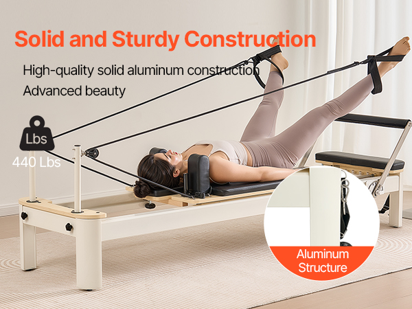 Built with a strong aluminum alloy frame, this pilates reformer offers superior durability. The material ensures long-lasting performance and stability.
