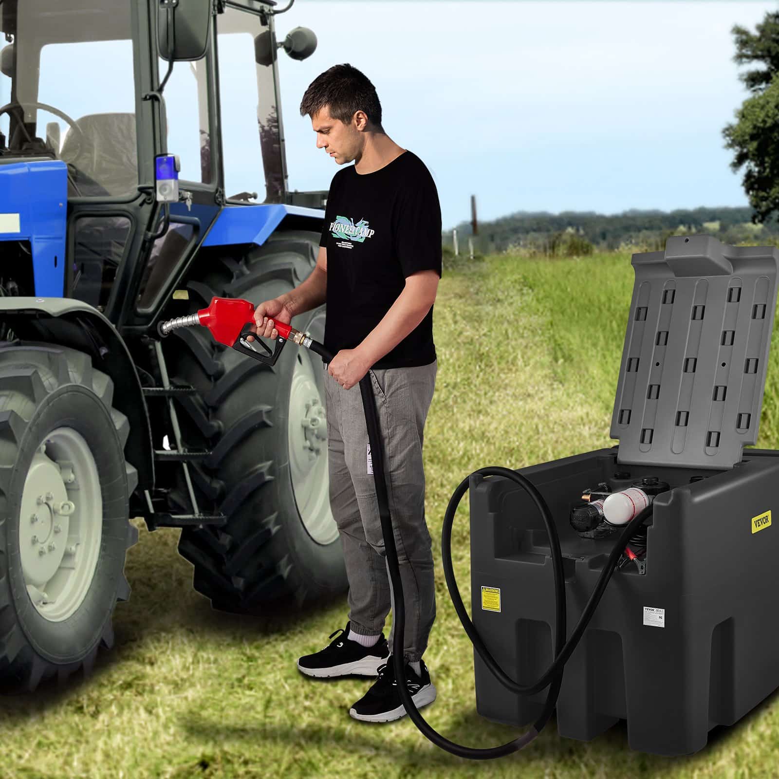 This portable diesel tank consists of superior quality polyethylene material, achieving durable and long-lasting use. The 12V transfer pump will deliver fuel at 10.6 gallons per minute, providing the ultimate way to easily refill while protecting your assets from contaminated fuel. And the newly increased filter ensures your fuel keeps clean and pure. Therefore, it’s a perfect tool for refueling vehicles or appliances in agriculture, industry, marine, gardening, etc. Take your fuel seriously and make the switch to VEVOR.