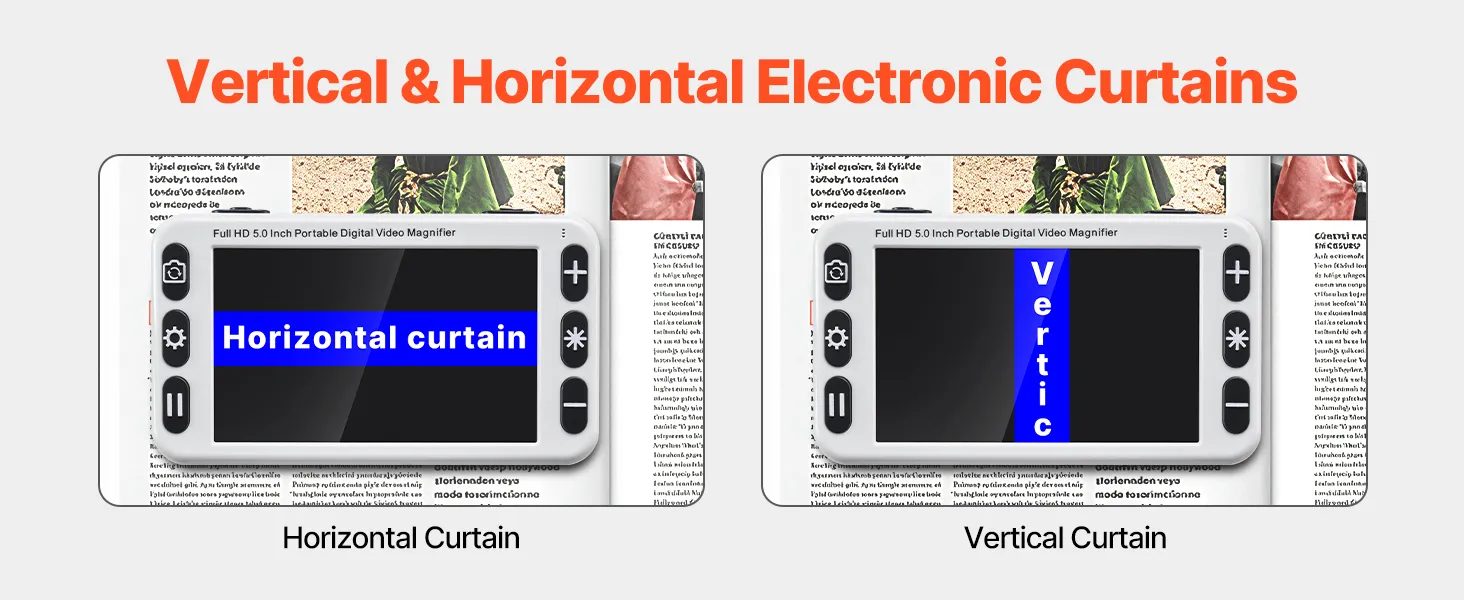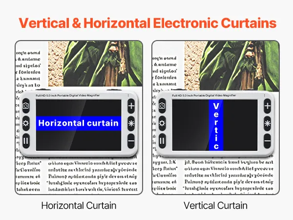 Our electronic reading aid supports vertical and horizontal electronic curtains, allowing users to adjust screen masking in vertical or horizontal directions to reduce distractions, helping them focus on the reading content.