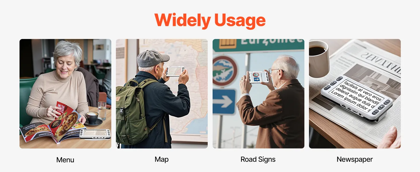 Whether you're reading a menu, checking a map, browsing a newspaper, or identifying road signs, this handheld digital magnifier helps you see the details more clearly—making your daily life and travel easier and more comfortable.