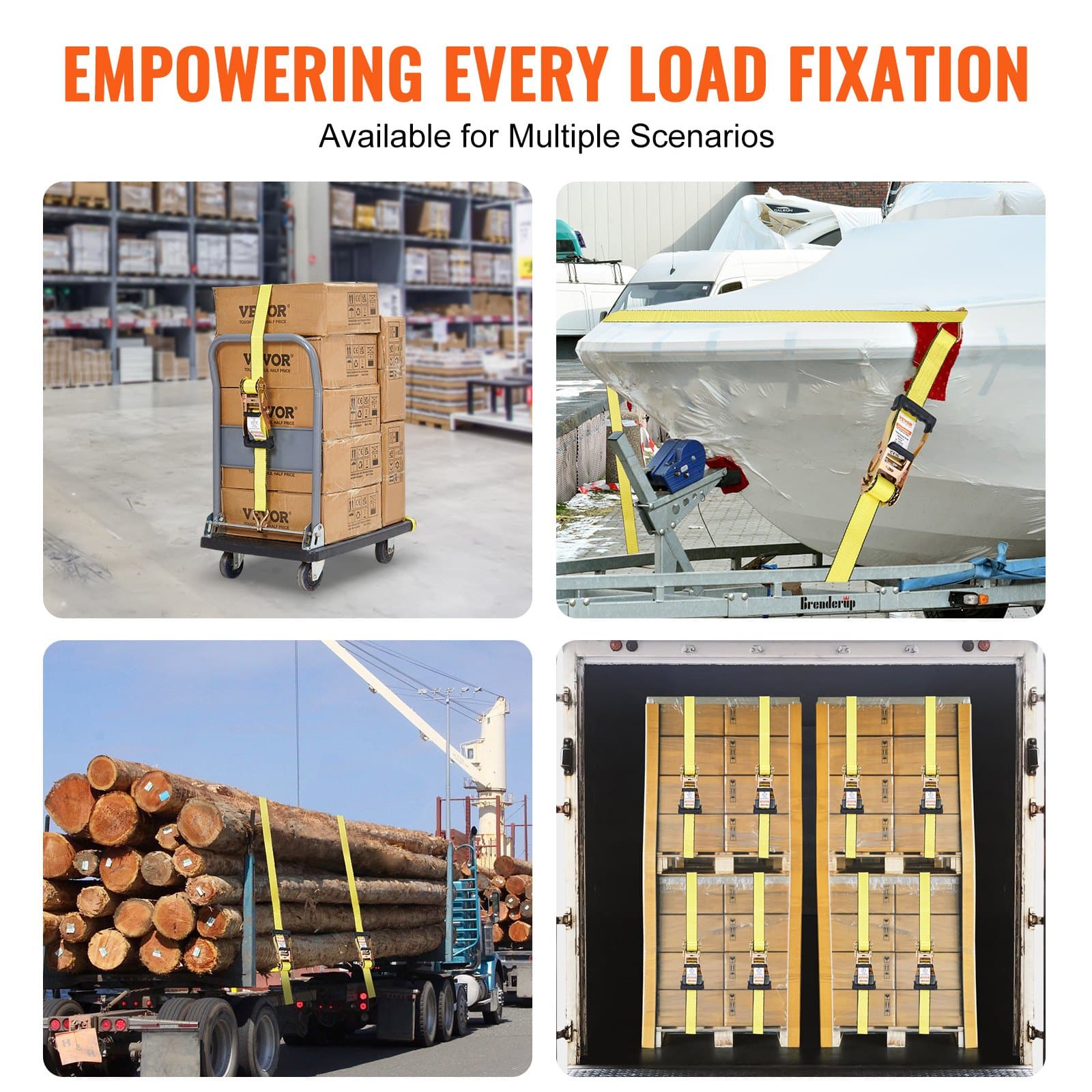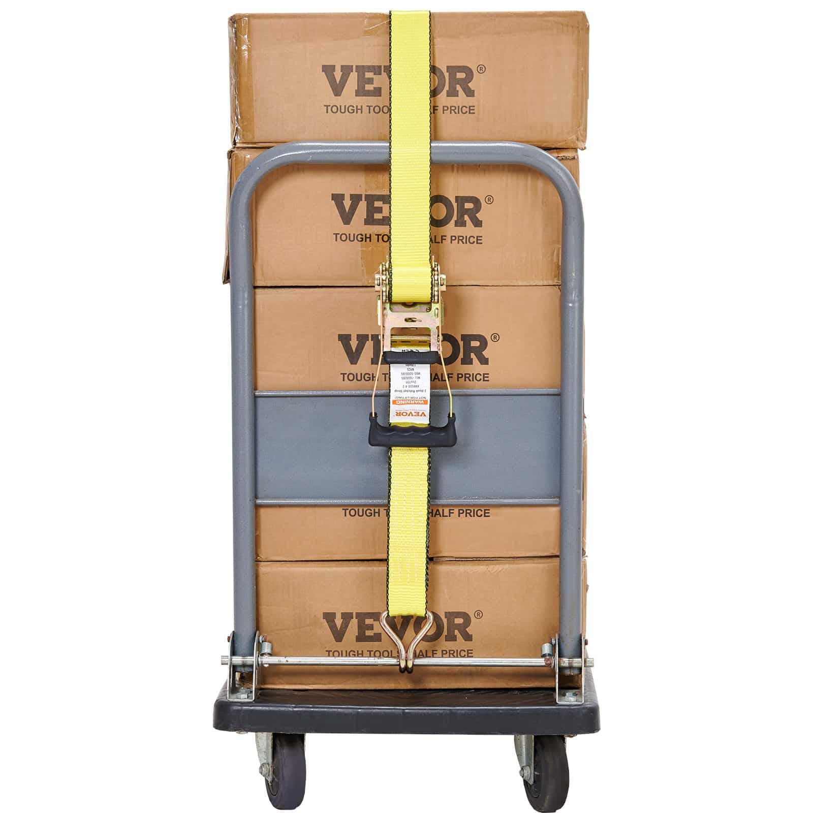 VEVOR Ratchet Tie Down Straps (4PK), 10000 lb Break Strength, Double J Hook Includes 4 Premium 2" x 27' Rachet Tie Downs with Padded Handles, for Moving Securing Cargo, Appliances, Lawn Equipment