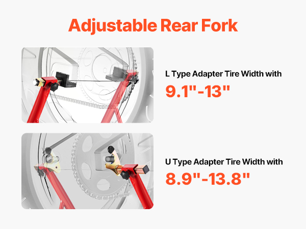 VEVOR Motorcycle Rear Wheel Stand, 850 LBS Load Capacity Heavy Duty Rear Wheel Stand with U + L Fork Swingarm Spool, Adjustabe Motorcycle Lift Jack Stand, for Suzuki Yamaha Honda Kawasaki, Red