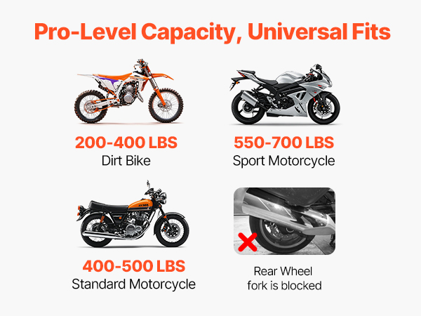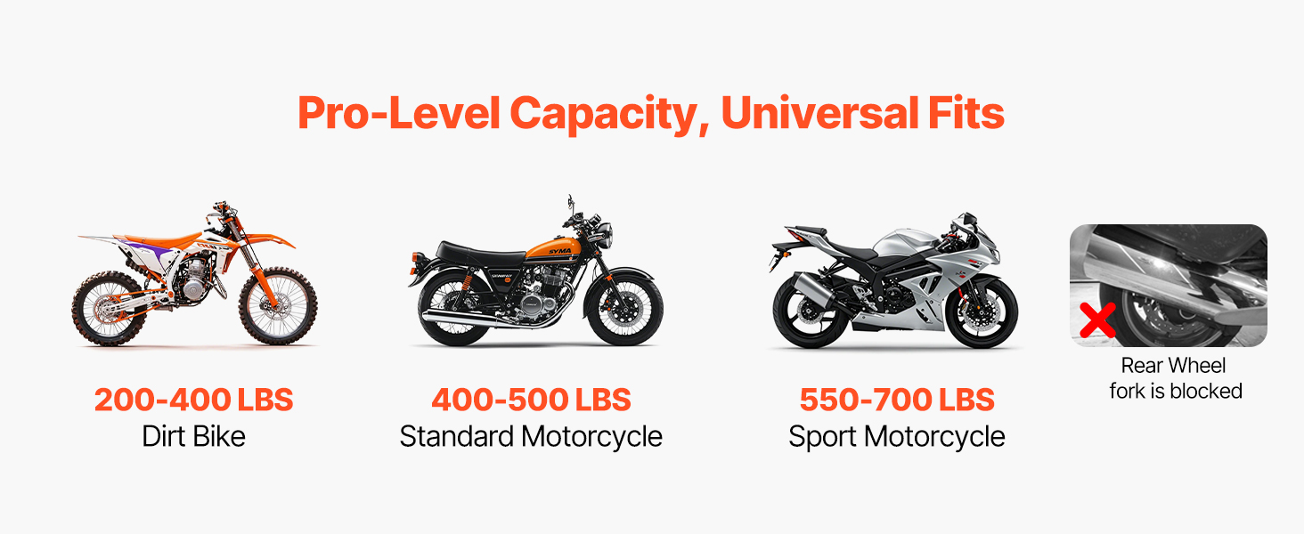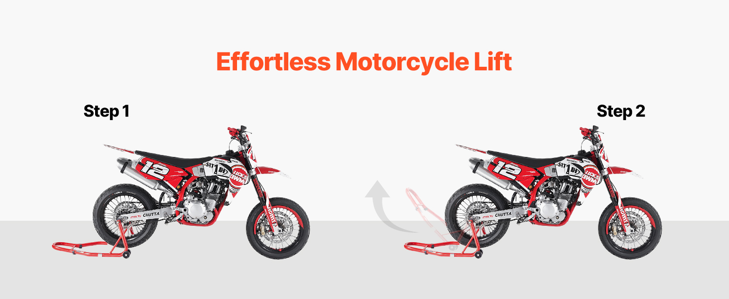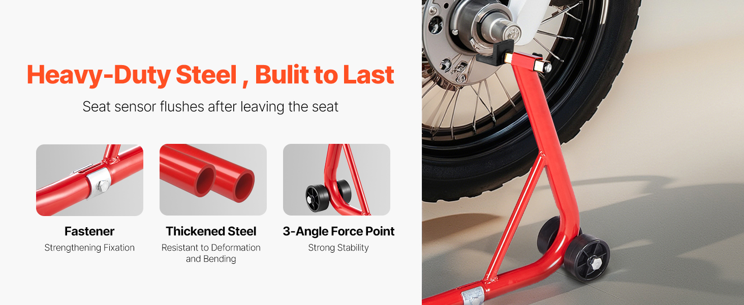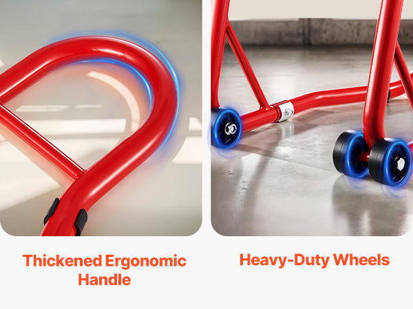 Our motorcycle maintenance stand is crafted from professional-grade reinforced heavy-duty steel, providing stable support for most motorcycles. Resistant to deformation and bending, it is ideal for home repairs, long-term storage, and routine maintenance.