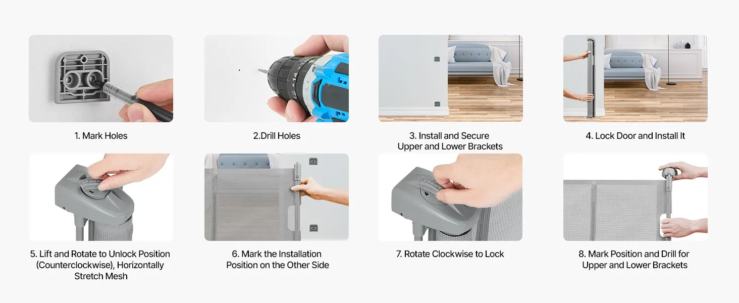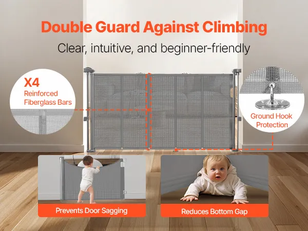 Our retractable baby gates feature an anti-crawl bottom strip, adding an extra layer of security. It ensures that pets or children can't easily crawl underneath, providing peace of mind for parents and added security for pets.