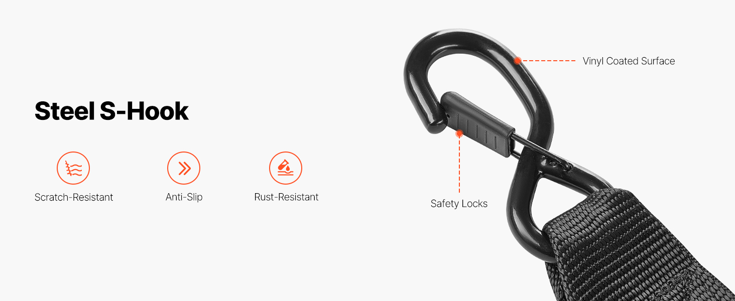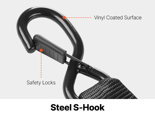 This ratchet strap offers 1,500 lbs break strength and 500 lbs load capacity. Made from durable PP material, it’s corrosion-resistant, easy to use with a quick-release buckle, and ensures secure fastening with S-hooks and velcro for convenient storage.