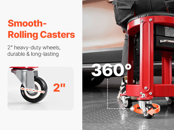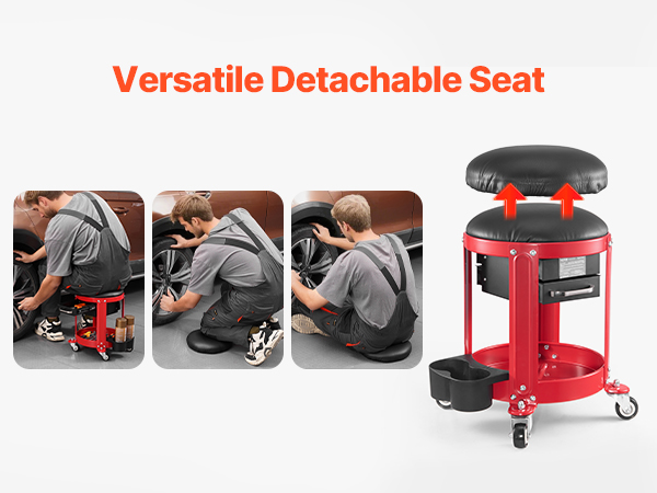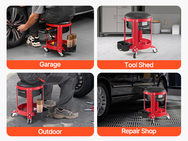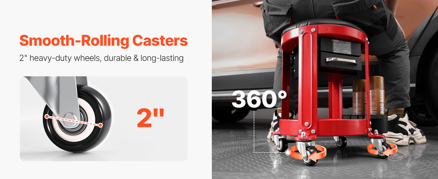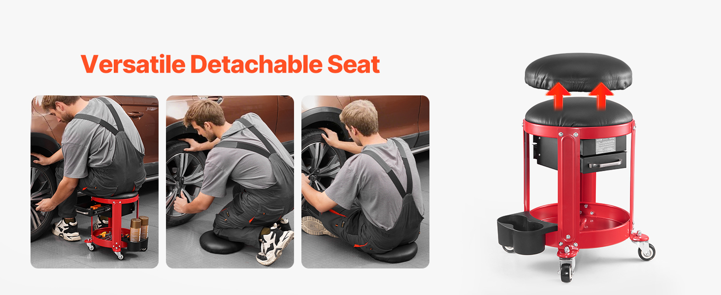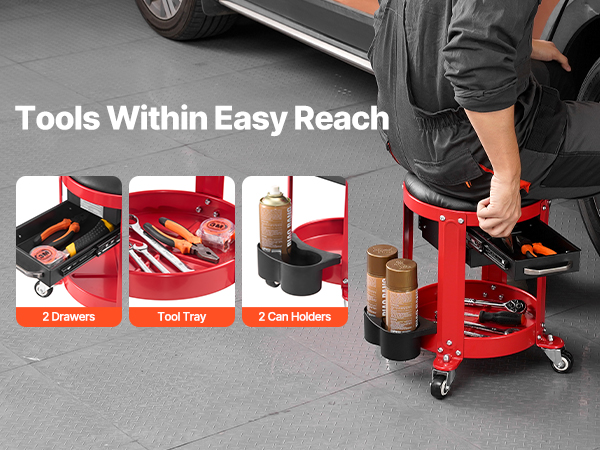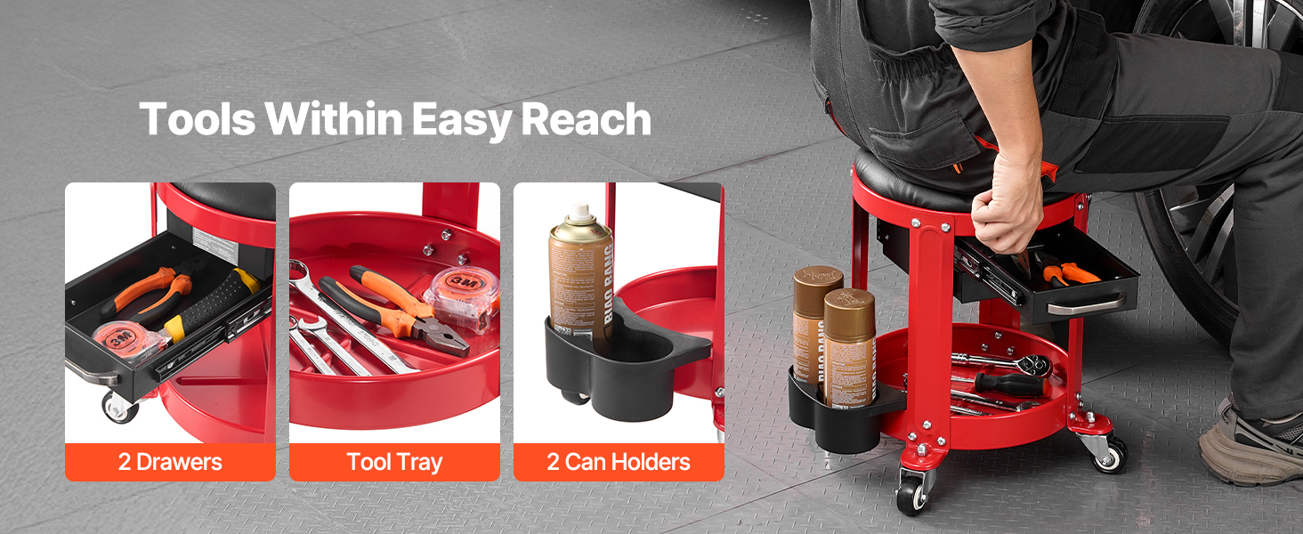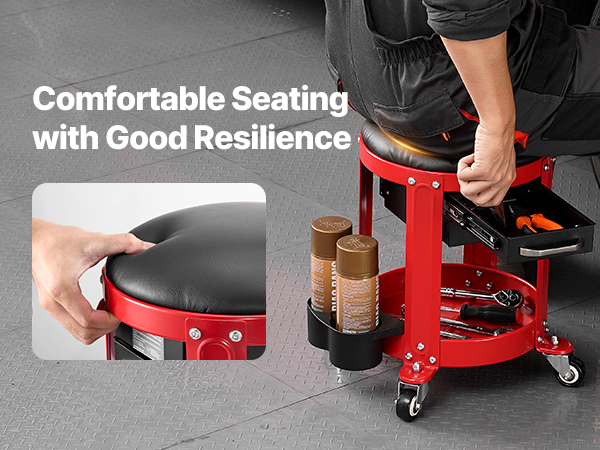 VEVOR Rolling Mechanic Stool with Drawers & Tool Tray, 136 kg Capacity, Waterproof Cushion, for Garage & Auto Repair, Red/Black