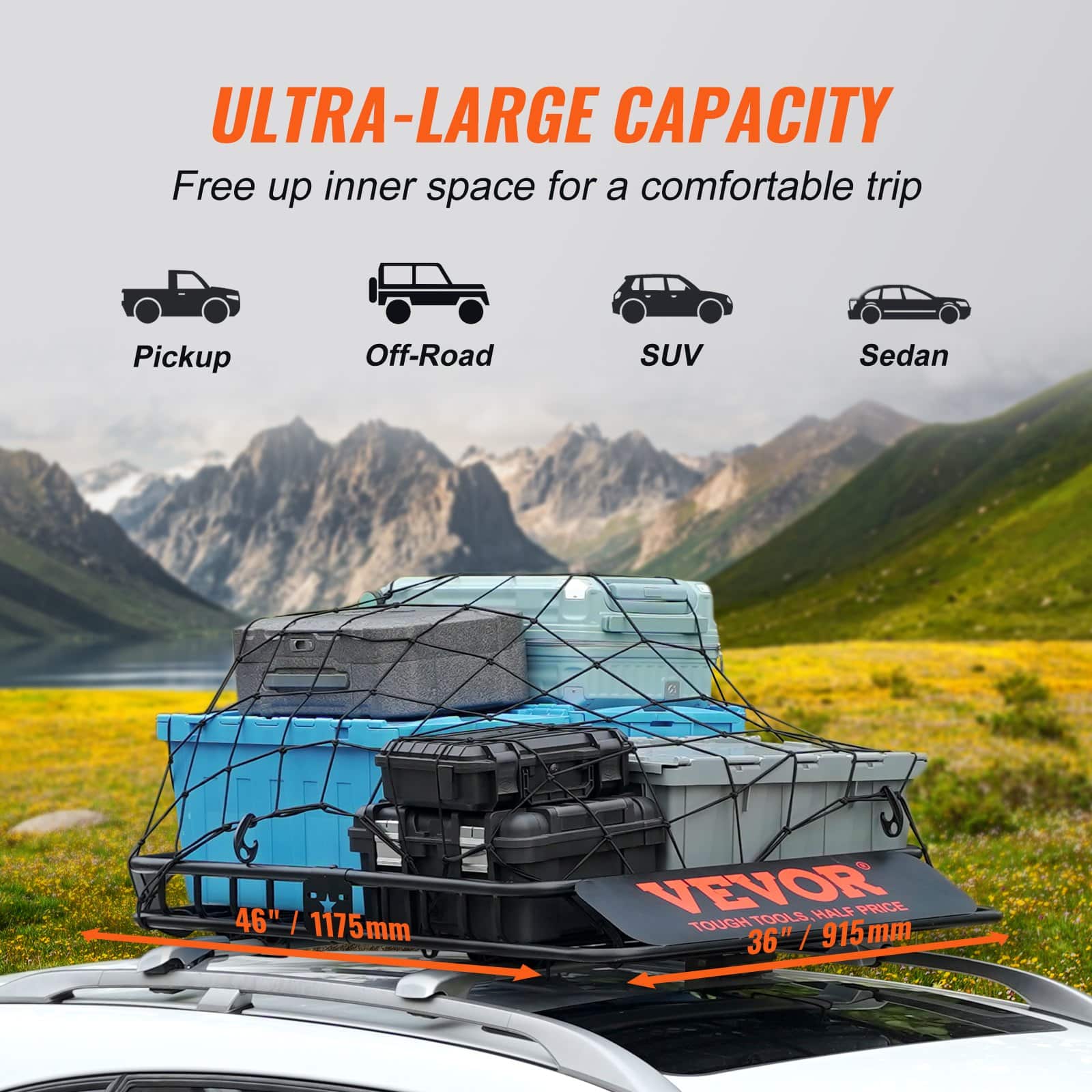 Free up your space with VEVOR roof rack cargo carrier, go now!