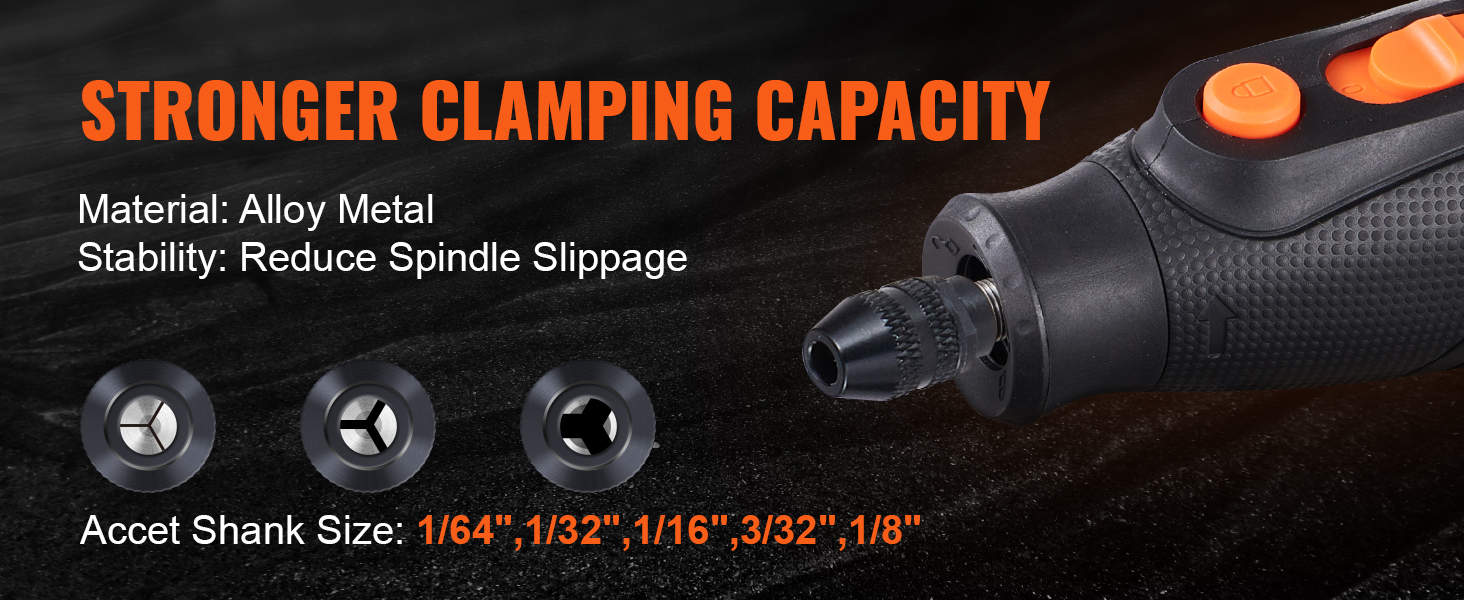 All our accessories feature quick changes. They are also difficult to drop, and an alloy universal chuck in included.