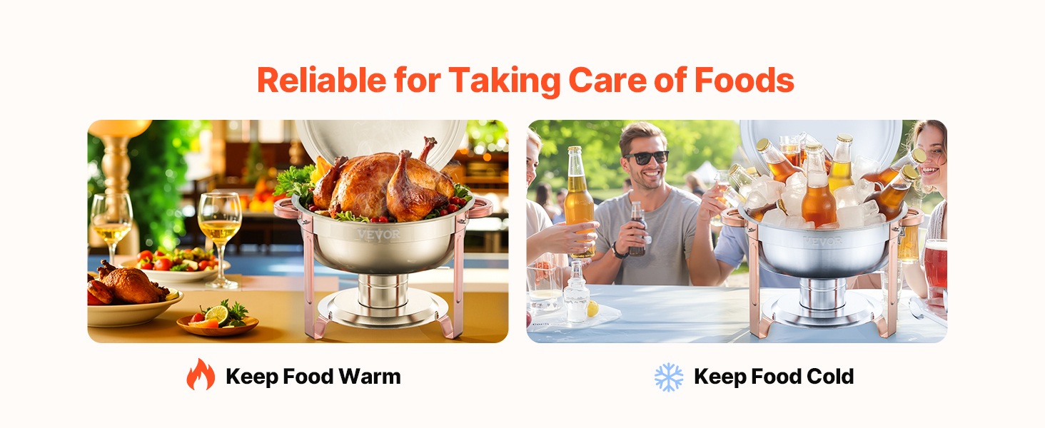 A1: This chafing dish is specifically designed to keep food warm. While it’s ideal for hot dishes, it can also be used for cold items as long as they are stored without heating. For best results, we recommend using it for hot food.