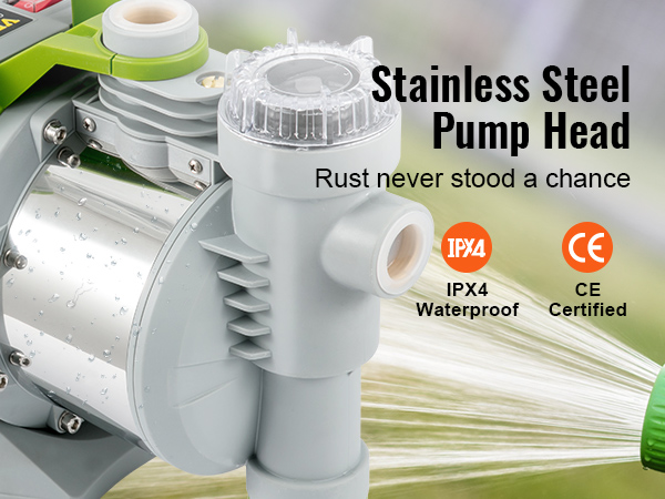 The thickened 304 stainless steel pump head makes this shallow well jet pump an excellent choice, putting your mind at ease by avoiding corrosion, rust, and leakage.
