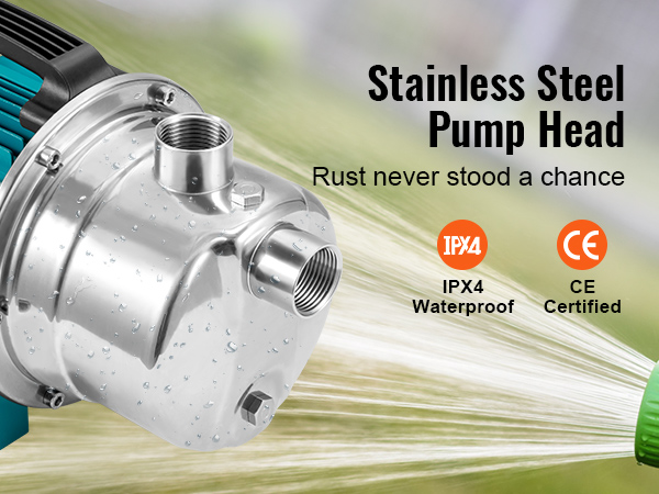 The thickened stainless steel pump head makes this shallow well jet pump an excellent choice, putting your mind at ease by avoiding corrosion, rust, and leakage.
