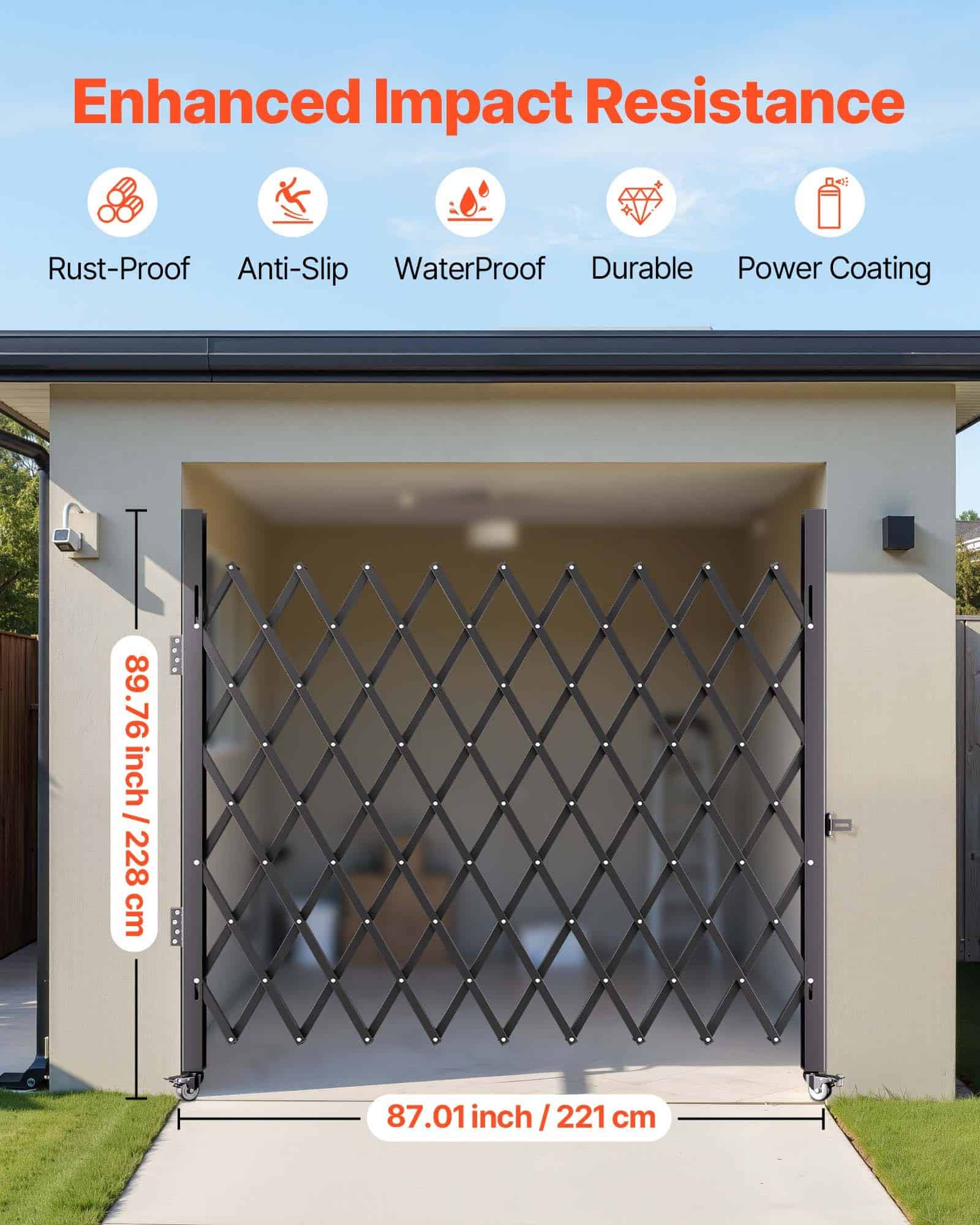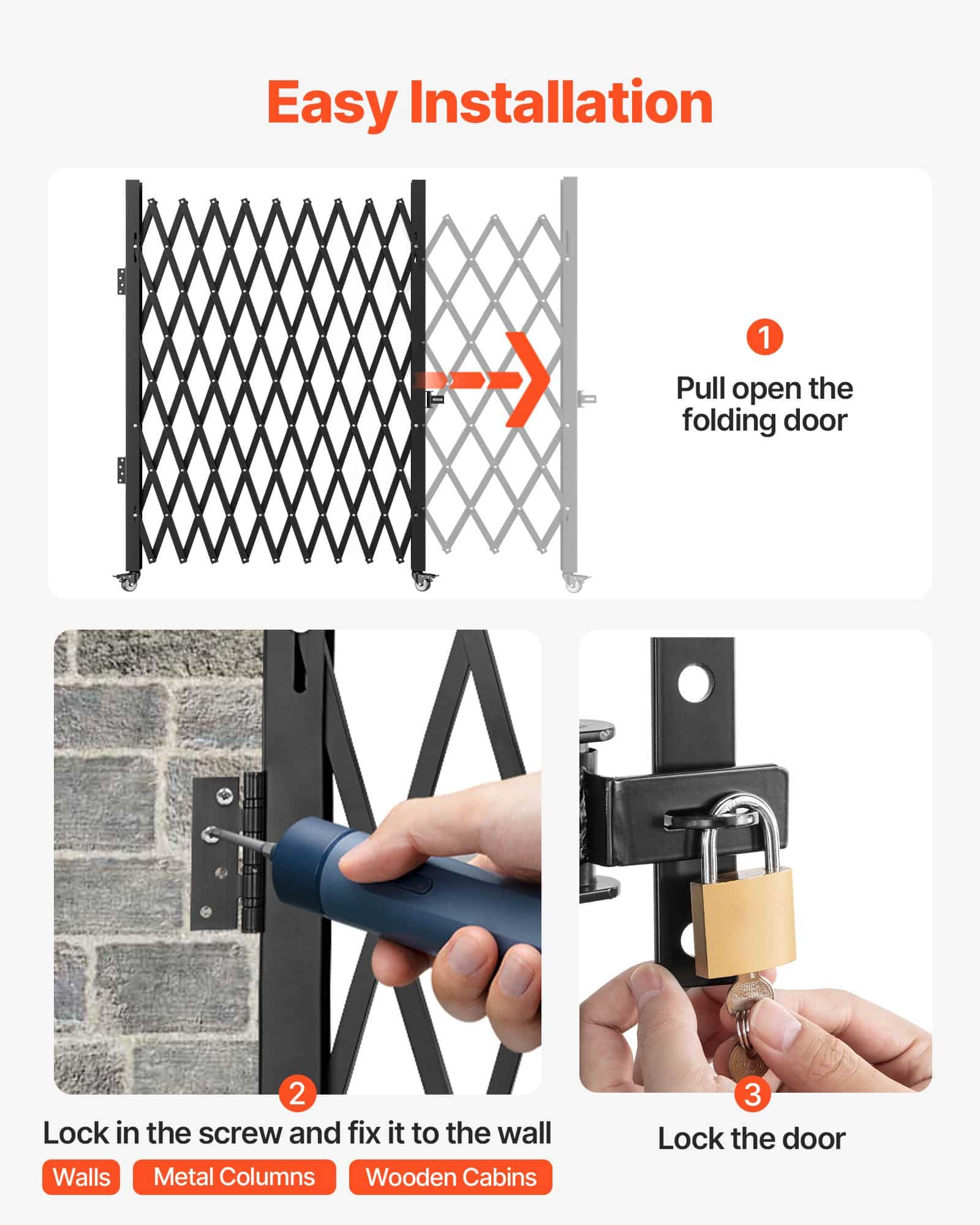 VEVOR Single Folding Security Gate, 198 cm H x 229 cm W Folding Door Gate, Steel Accordion Security Gate, Flexible Expanding Security Gate, 360° Rolling Barricade Gate, Scissor Gate/Door with Padloc