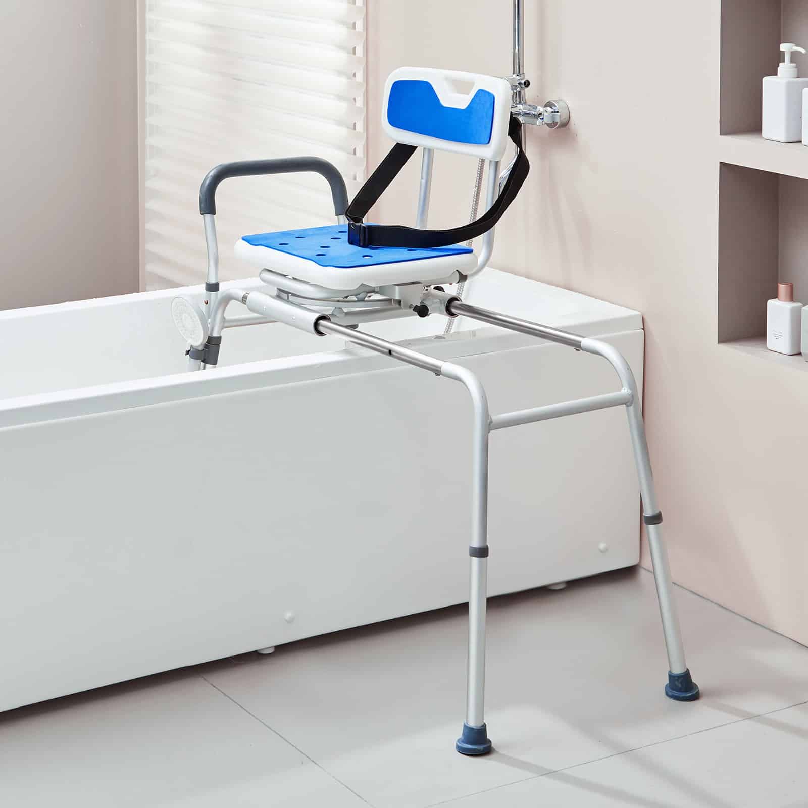 VEVOR Sliding Tub Transfer Bench with 360 Degree Swivel Seat, Height Adjustable Bathtub Transfer Bench with Armrest & Safety Belt, Non-Slip Rotating Shower Chair for Elderly Disabled, 400LBS Capacity