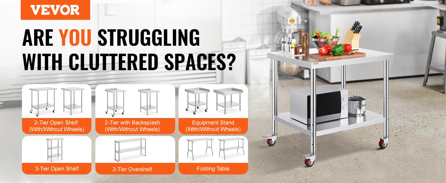 VEVOR stainless steel work tables combine innovative features with stylish design to offer the perfect work table for any space or application.