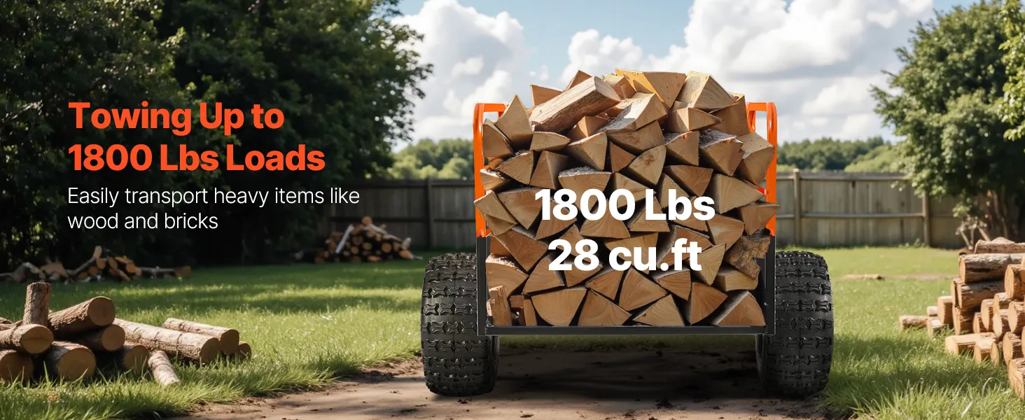 Capable of towing up to 1800 lbs, this heavy-duty atv trailer effortlessly hauls wood, bricks, and other heavy materials, making it the ideal tool for moving construction supplies and gardening essentials.