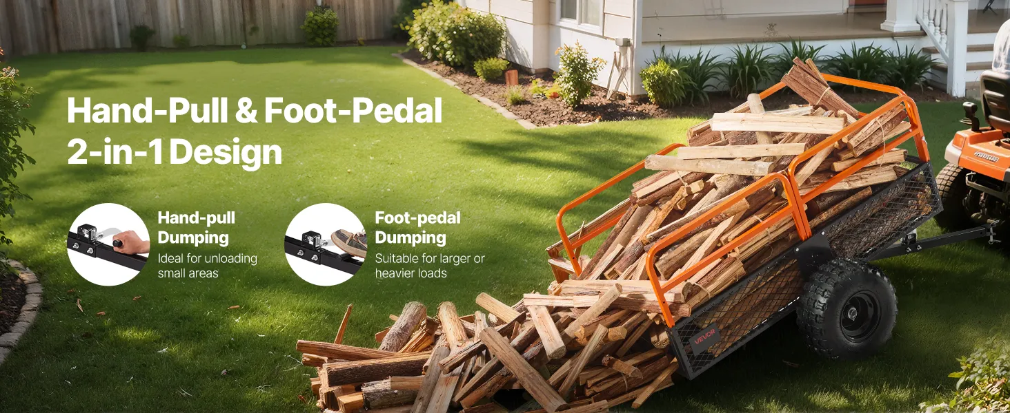 This 1800lb dump trailer is designed to connect with various vehicles, including tractors, ATVs, UTVs, lawnmowers, and more. Whether you're a gardening enthusiast or a farmer, this trailer easily attaches to your equipment for seamless hauling.