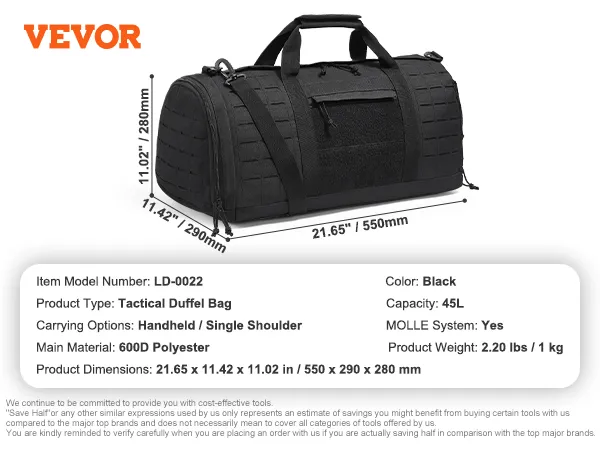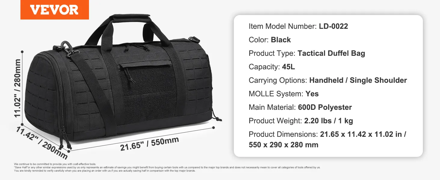 VEVOR Tactical Duffle Bag easily meets all your travel needs!