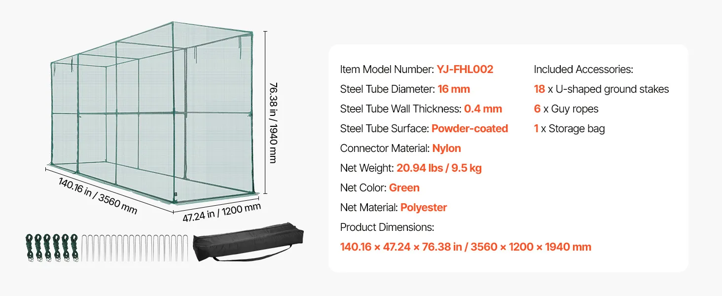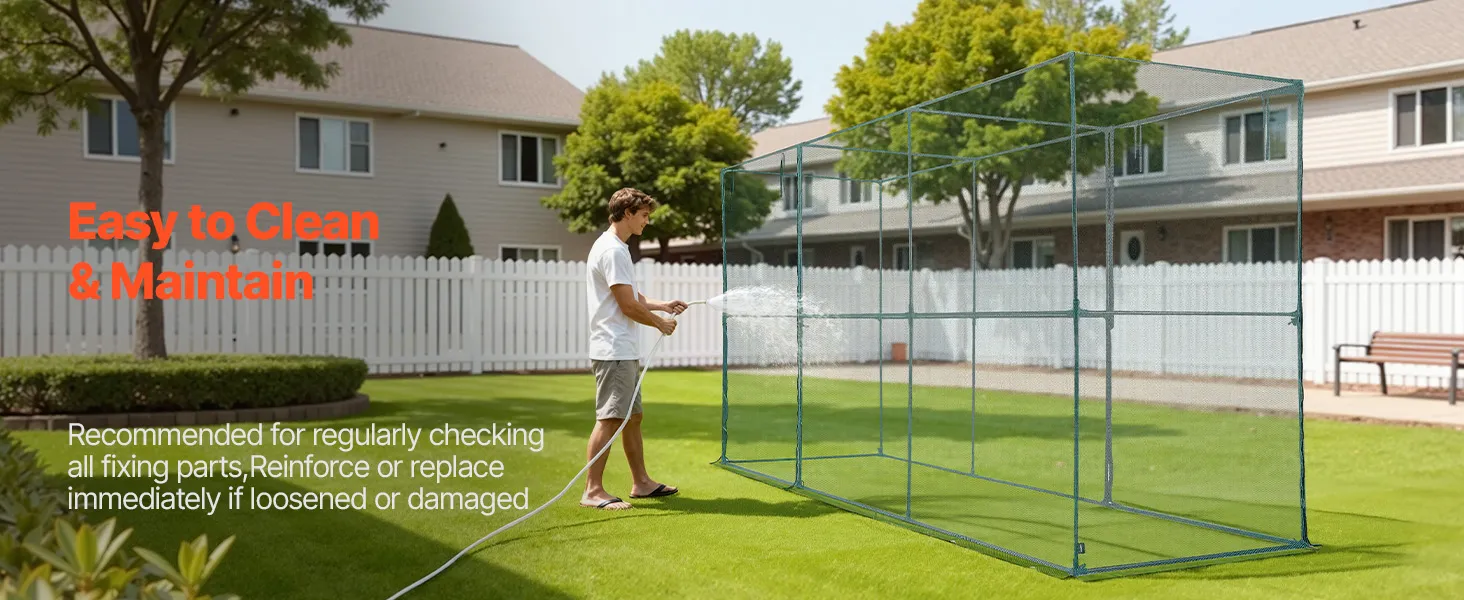 When the tall crop cage gets dirty, simply rinse it with water and air-dry. To ensure long-term stability, please regularly check all fixing parts. Reinforce or replace immediately if loosened or damaged.