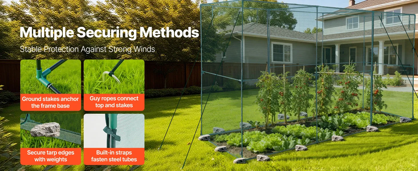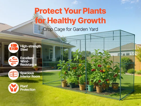 Our crop cages for garden features high-strength steel tubes and durable polyester mesh for a stable structure. It not only keeps animals away from the plants but also enhances wind resistance. With ample interior space, it ensures a flexible growing condition for plants.