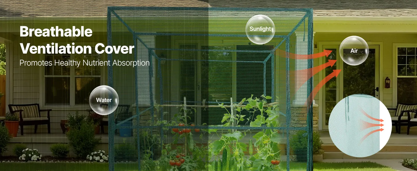 The breathable mesh promotes air circulation, sunlight exposure, and water penetration. Our crop cage fully provides nutrients for plants and creates an ideal condition for their vigorous growth.