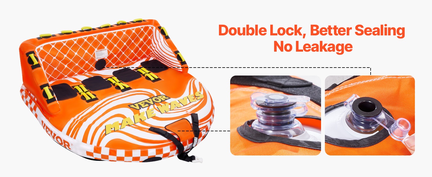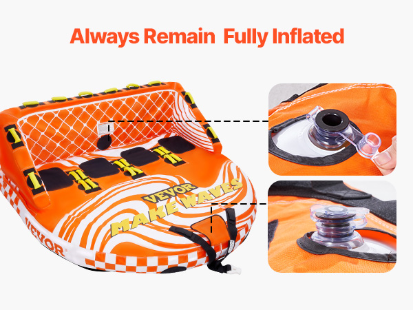 Experience thrilling water adventure with our 1-4 riders towable tube for boating. Designed for safety, comfort, and excitement, it features high backrests and wide sidewalls to prevent falls during high-speed rides, along with 22 grip handles and 2 boarding straps for easy access after a splash.