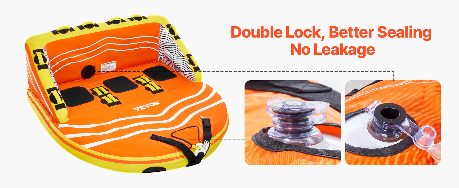 Experience thrilling water adventure with our 1-3 riders towable tube for boating. Designed for safety, comfort, and excitement, it features high backrests and wide sidewalls to prevent falls during high-speed rides, along with 16 grip handles and 2 boarding straps for easy access after a splash.