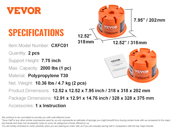 VEVOR Trailer Jack Block, 2000 lbs Capacity per RV Leveling Block, High-quality Polypropylene RV Camper Stabilizer Blocks, RV Travel Accessories Use for Any Tongue Jack, Post, Foot, 5th Wheels, 2-Pack