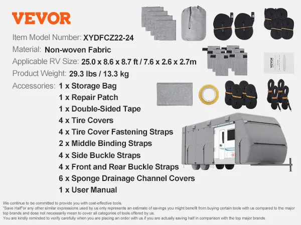 VEVOR Trailer Travel RV Cover 671.6-731.5 cm Class A Camper Cover Non-Woven Fabric