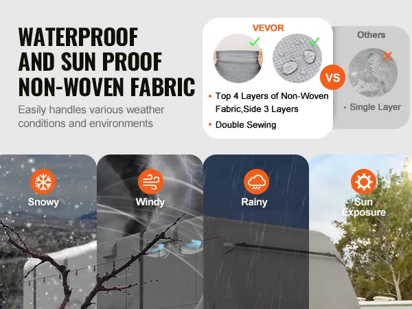 Our trailer RV cover features a robust 4-layer top and 3-layer sides made from durable non-woven fabric, providing waterproof and sun-proof protection. It is designed to withstand various weather challenges.