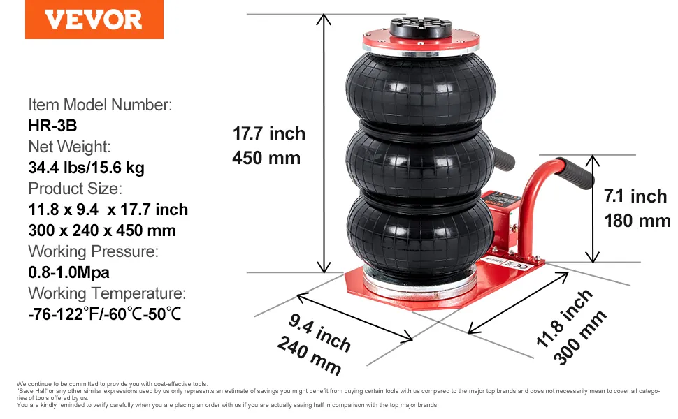 • Versatile Lifting Range: Experience the freedom to work on vehicles of different heights. Our air bag lift jack boasts a lifting height range of 5.5-17.7 inches (140 mm-450 mm), ensuring it adapts perfectly to your maintenance needs. Enjoy hassle-free repair and maintenance work with this convenient feature.
