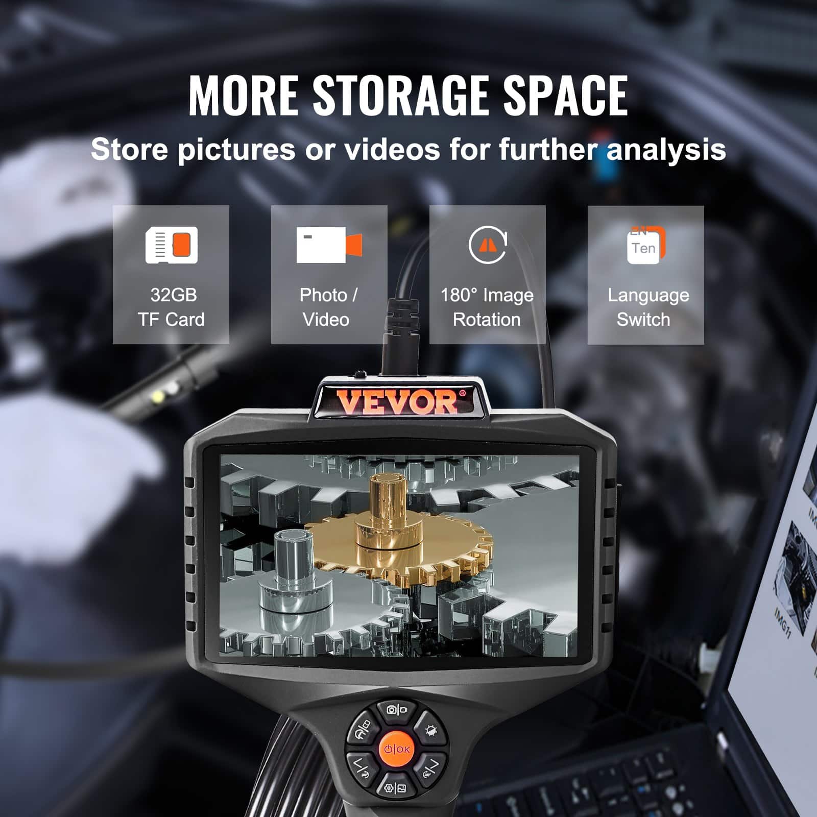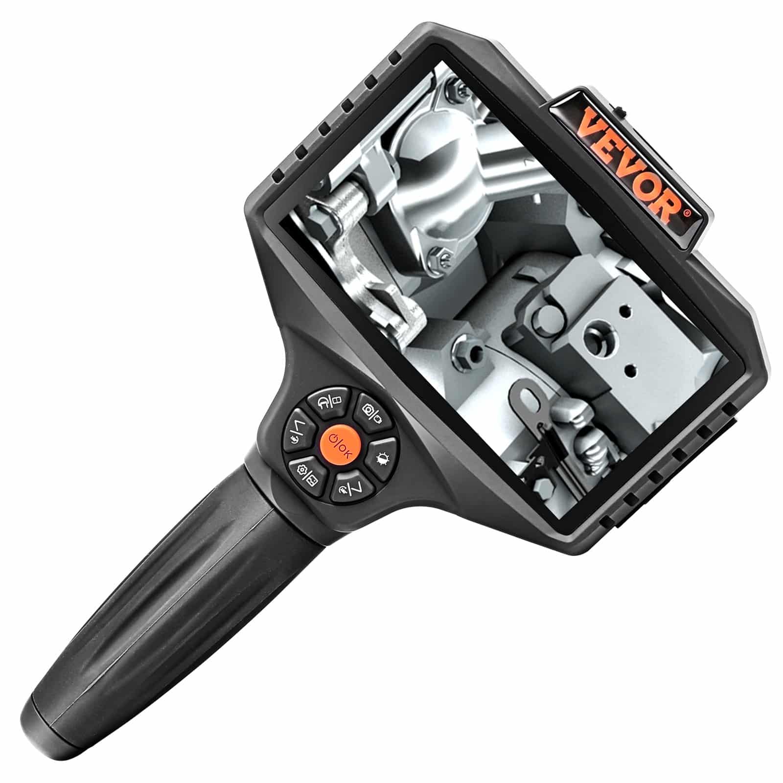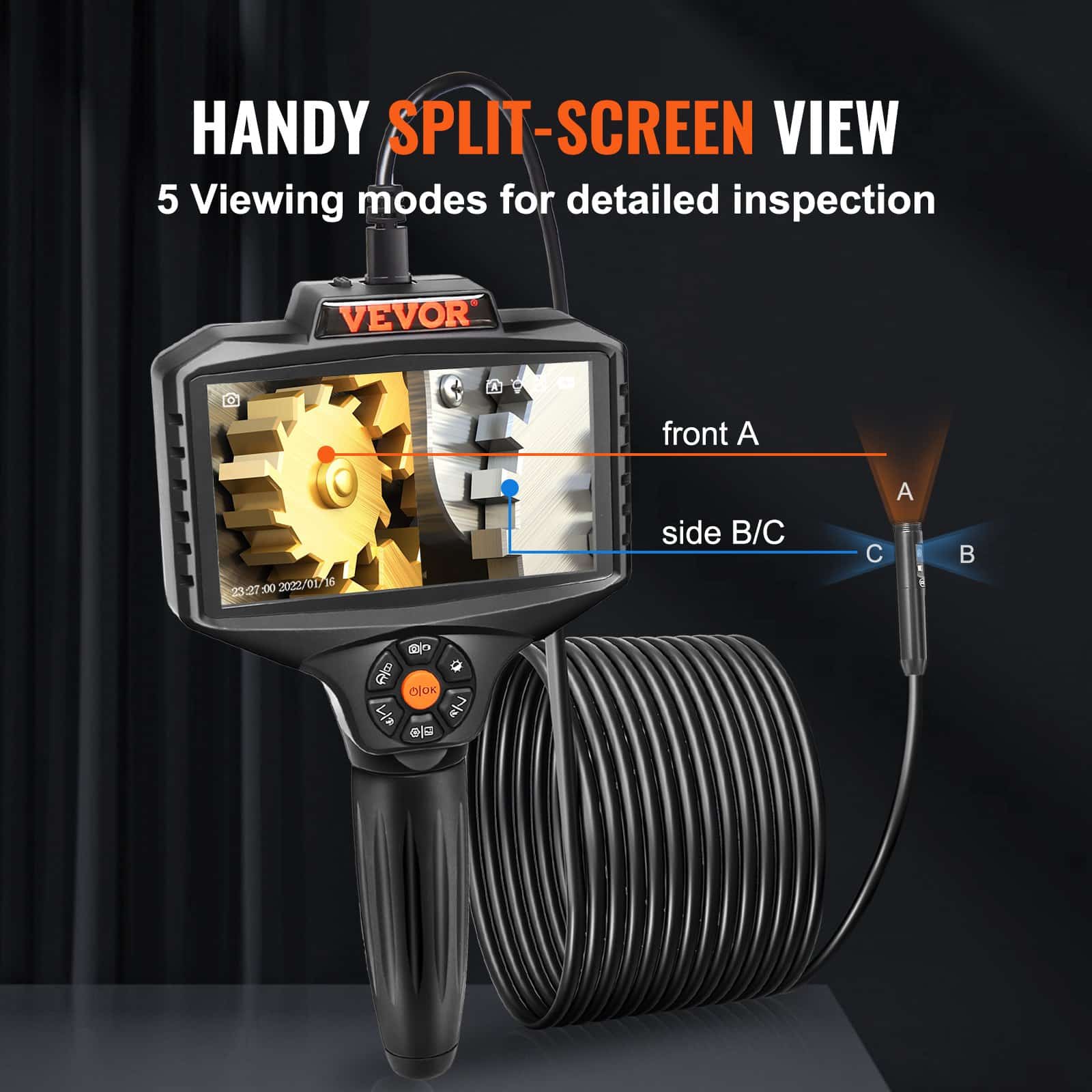 VEVOR Triple Lens Inspection Camera with Light, 12.7cm IPS Screen Industrial Borescope, 8X Zoom 1080P HD Split Screen, 10 LED Lights Scope Camera for Automotive, Plumbing (5m)