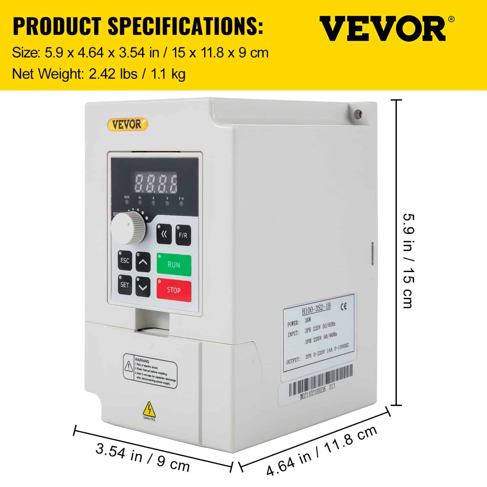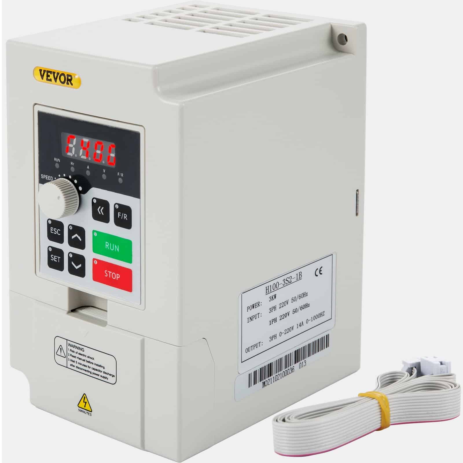 VEVOR Variable Frequency Drive, AC 220V Input 3KW Variable Frequency CNC Drive Inverter Converter, VFD 4HP 1 or 3 Phase Input, 3 Phase Output, CNC Motor Inverter Converter for Motor Speed Control