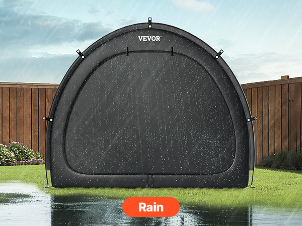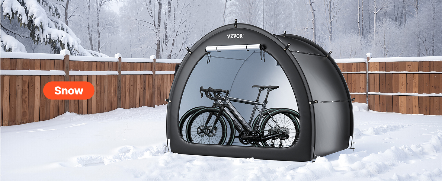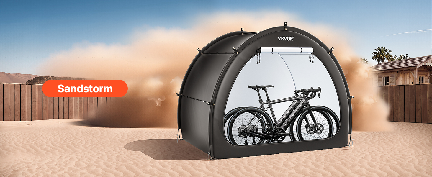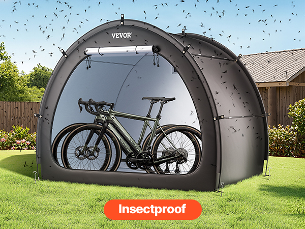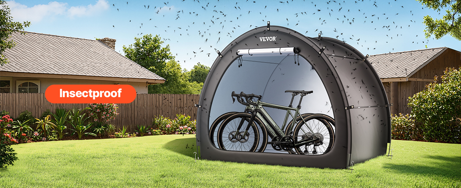 Our bike shed features a dual-layer waterproof coating and 210D silver-coated Oxford fabric for durability. The sturdy fiberglass frame ensures stability, while its lightweight design allows quick setup. Ventilation windows keep the interior dry and fresh.
