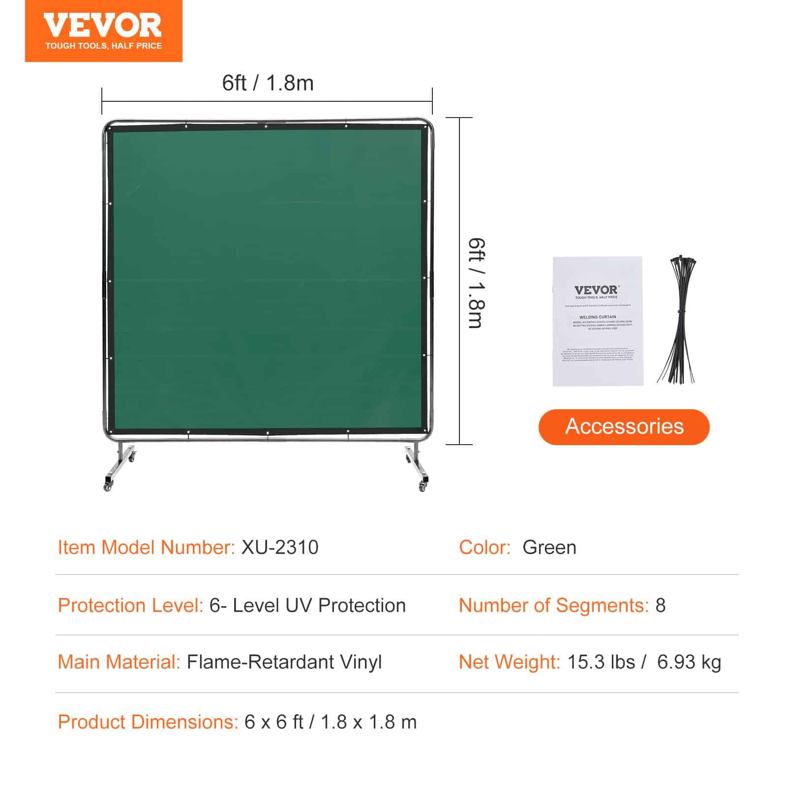 Are you ready to take your welding safety to the next level? Look no further! VEVOR 6x6 FT welding screen with frame is here to offer outstanding flame resistance, 6-level UV protection, stable frame and 360° rotational wheels, making it the ultimate companion for secure and efficient workspace.