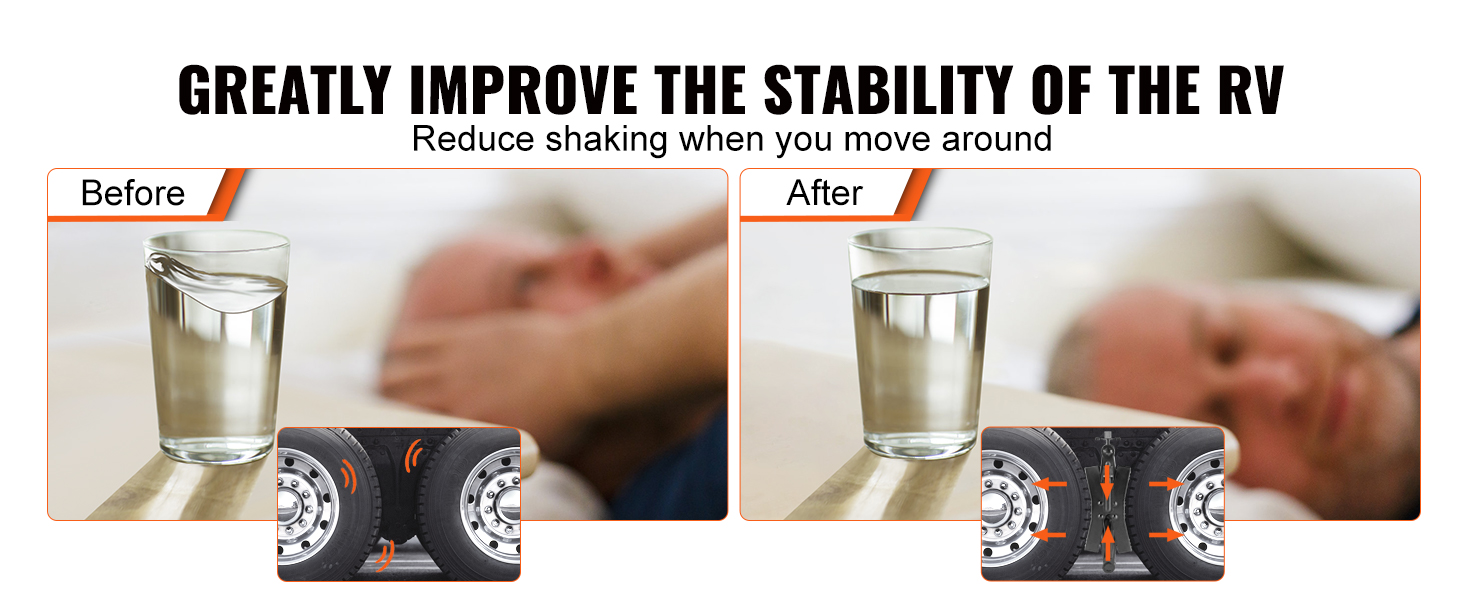 H-chock wheel stabilizer is highly compatible and can be installed in the range of 3.5-12 inch tire spacing. It is suitable for camping trailers, heavy trucks, fifth-wheel trailers, two-wheel trailers, etc.