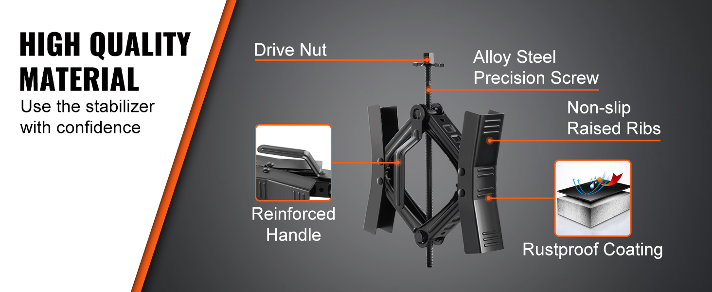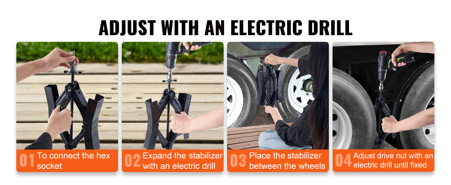 You can adjust the expansion and contraction of the wheel stabilizer using a wrench or drill; all you need is a drill and a hex socket.